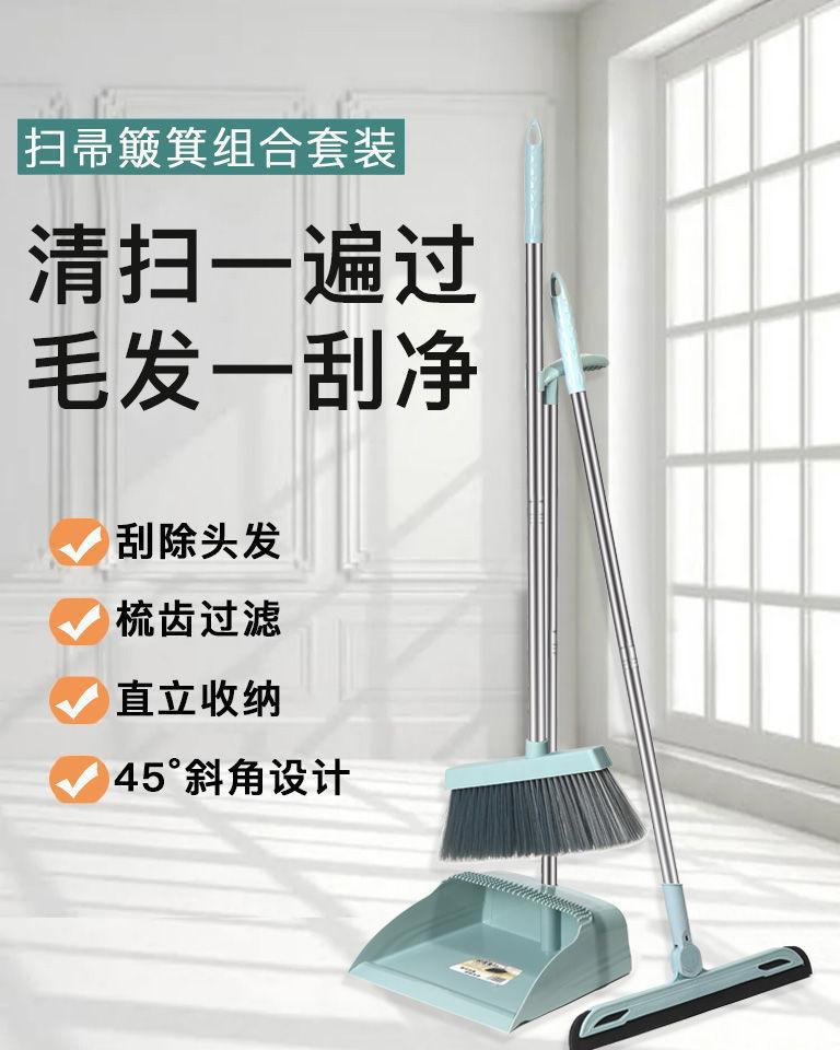 빗자루 더스트 팬 3 조각 회전 와이퍼 빗자루 세트 실내 부드러운 머리카락이 머리카락에 달라 붙지 않습니다.