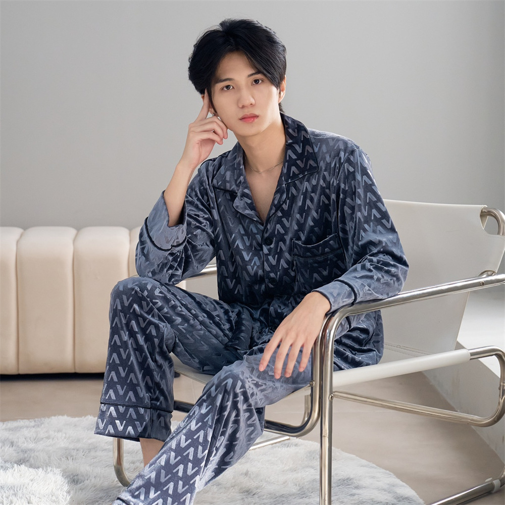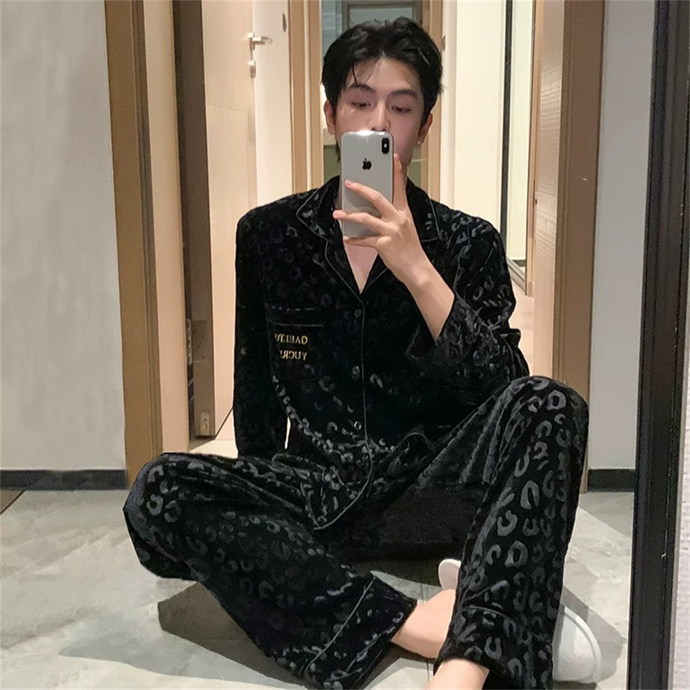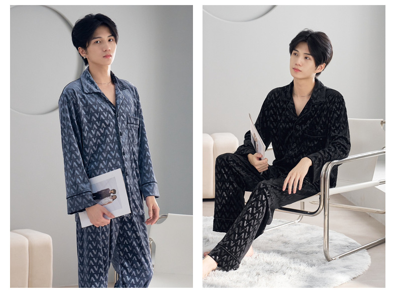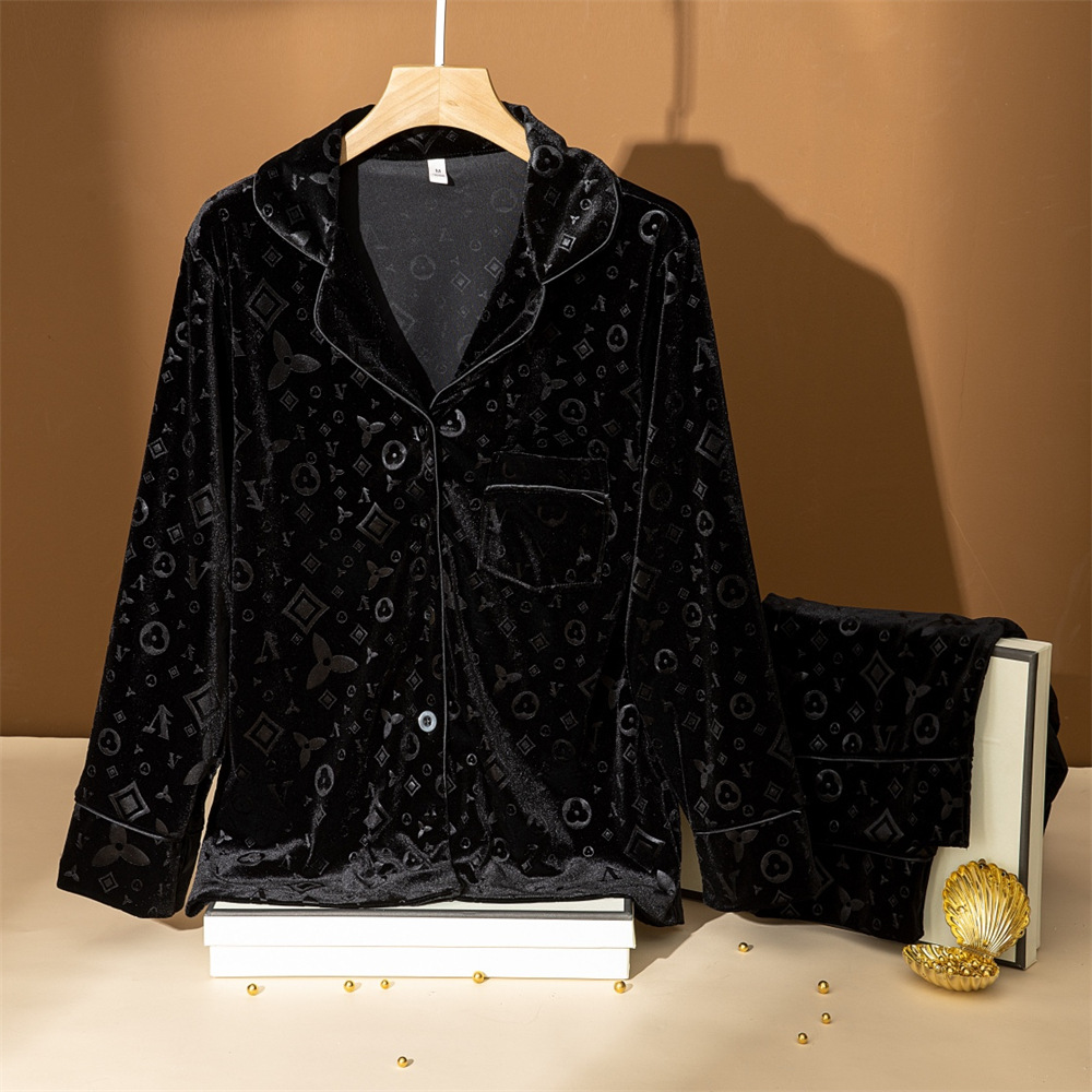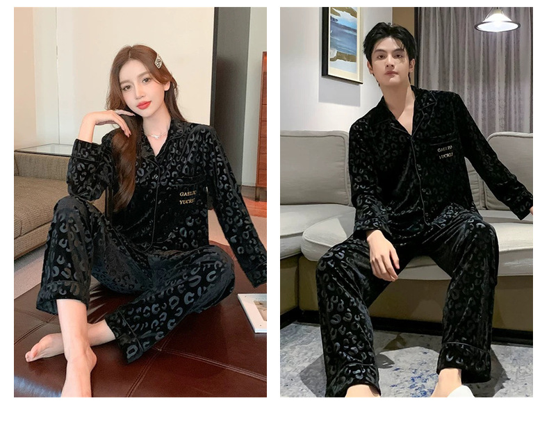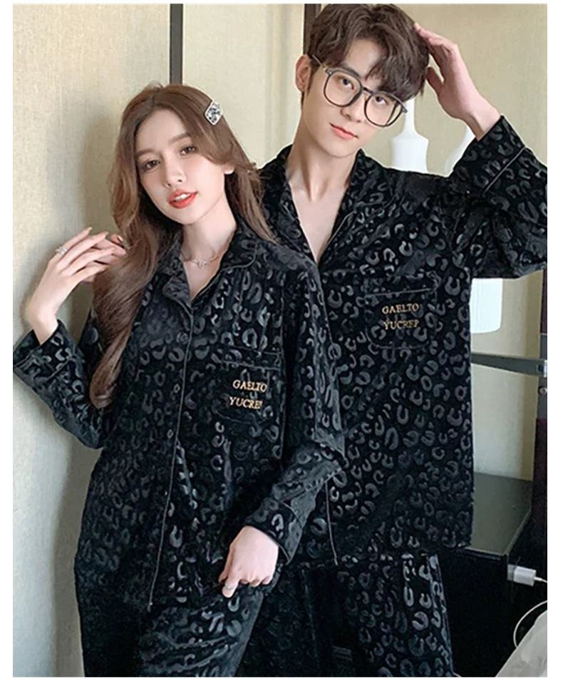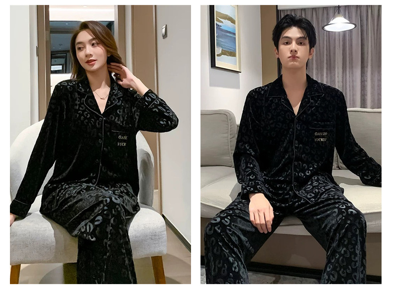 커플 잠옷 가을과 겨울 남자의 새로운 골드 벨벳 긴 소매 바지 세트 두꺼운 따뜻한 여성의 집 옷 도매