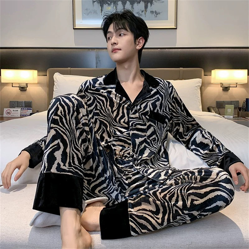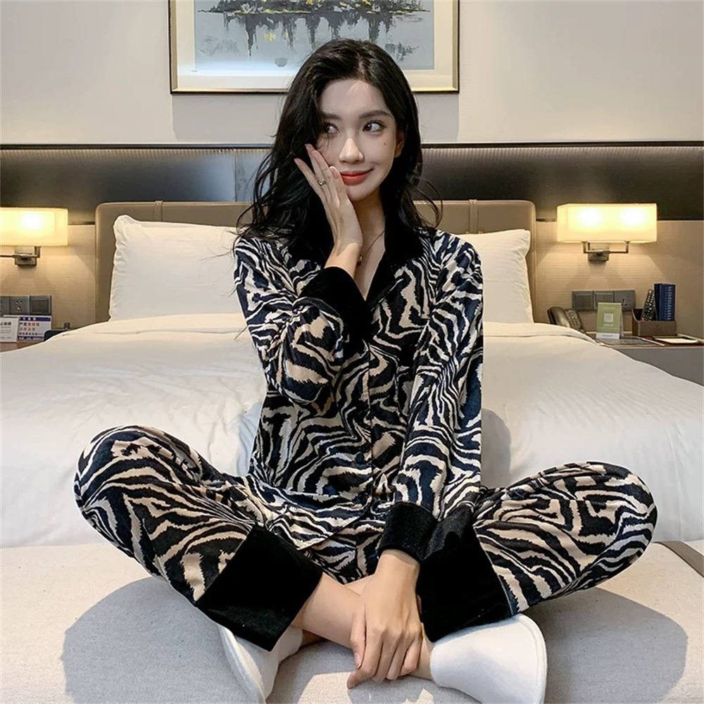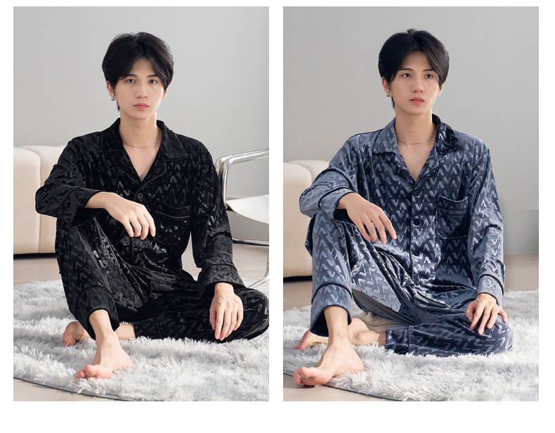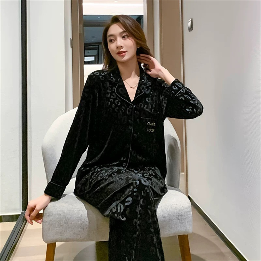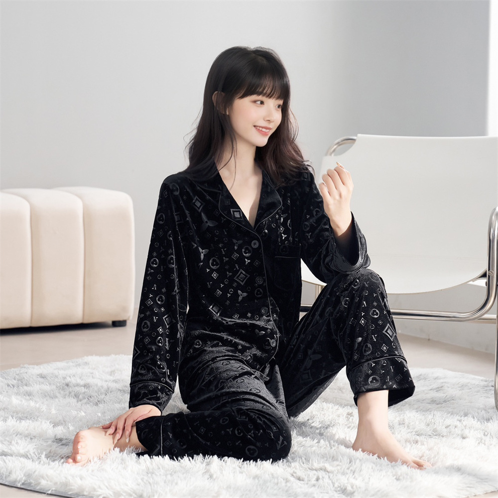 커플 잠옷 가을과 겨울 남자의 새로운 골드 벨벳 긴 소매 바지 세트 두꺼운 따뜻한 여성의 집 옷 도매