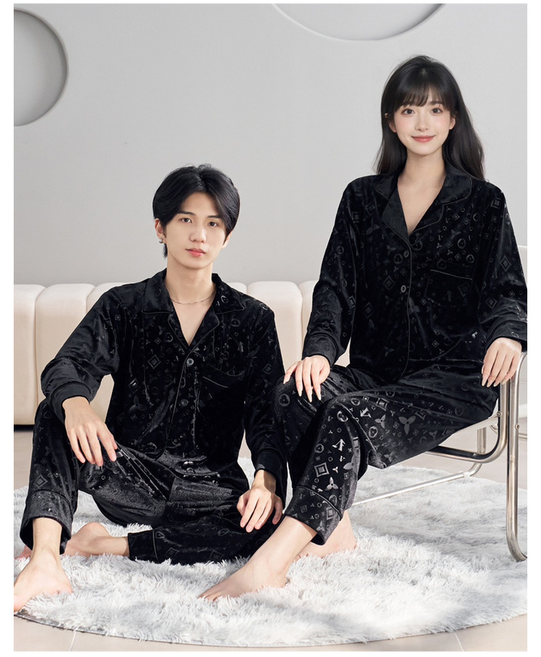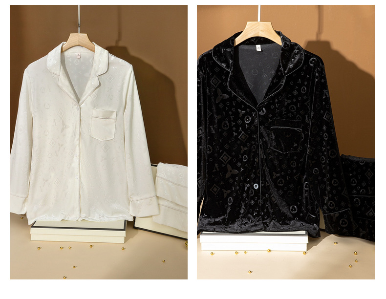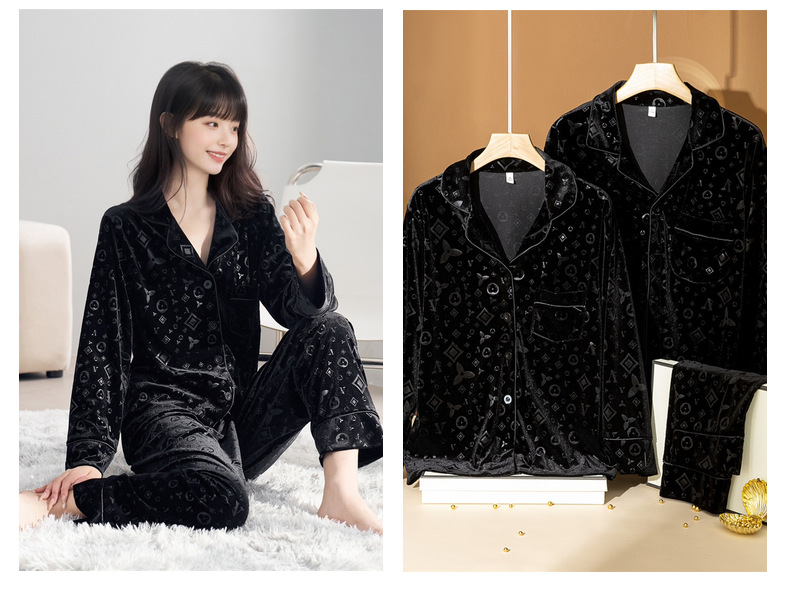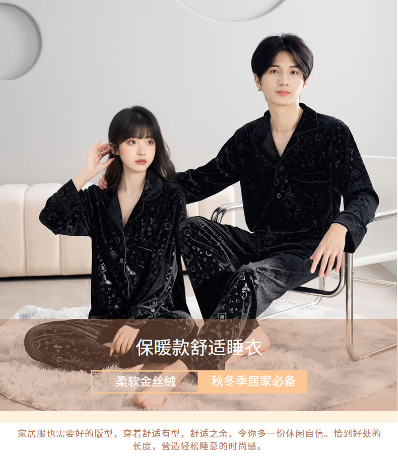 커플 잠옷 가을과 겨울 남자의 새로운 골드 벨벳 긴 소매 바지 세트 두꺼운 따뜻한 여성의 집 옷 도매스토어 가기