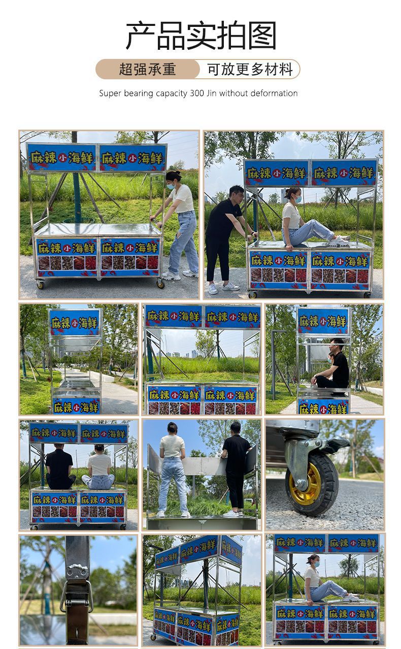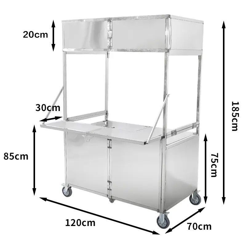 야시장 실속 트롤리 접이식 스테인레스 스틸 그물 빨간색 핸드 푸시 스낵 카트 휴대용 스톨 요리 식품 절인 음식 식사 카트
