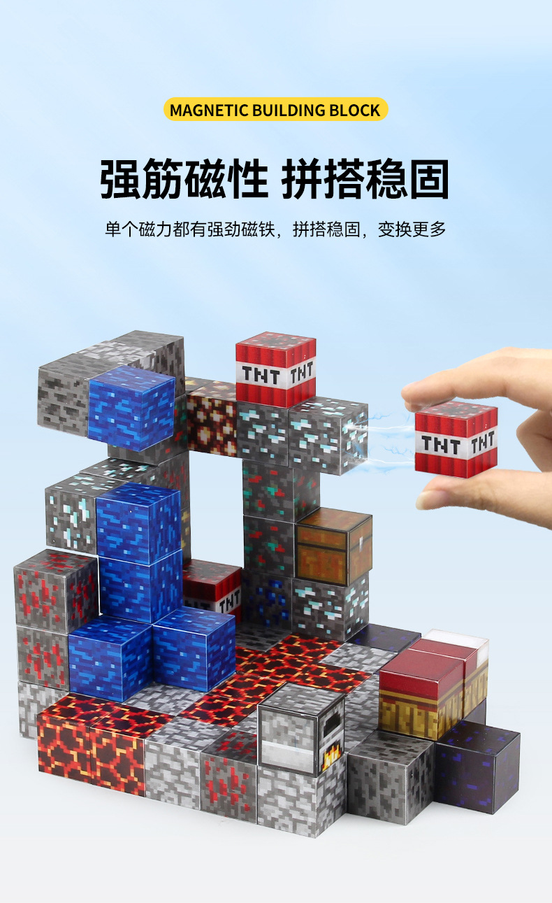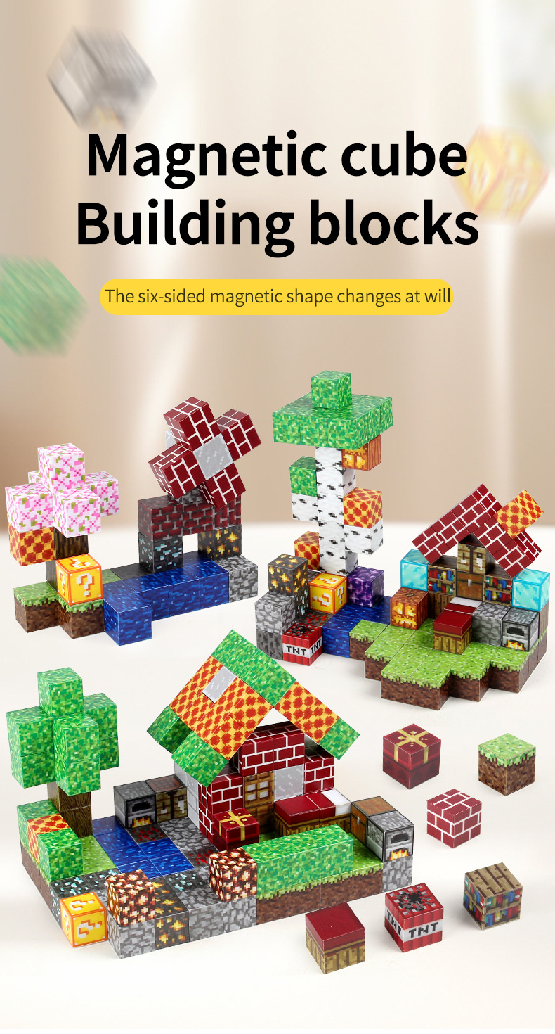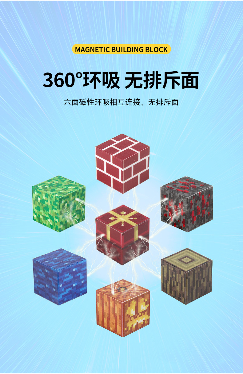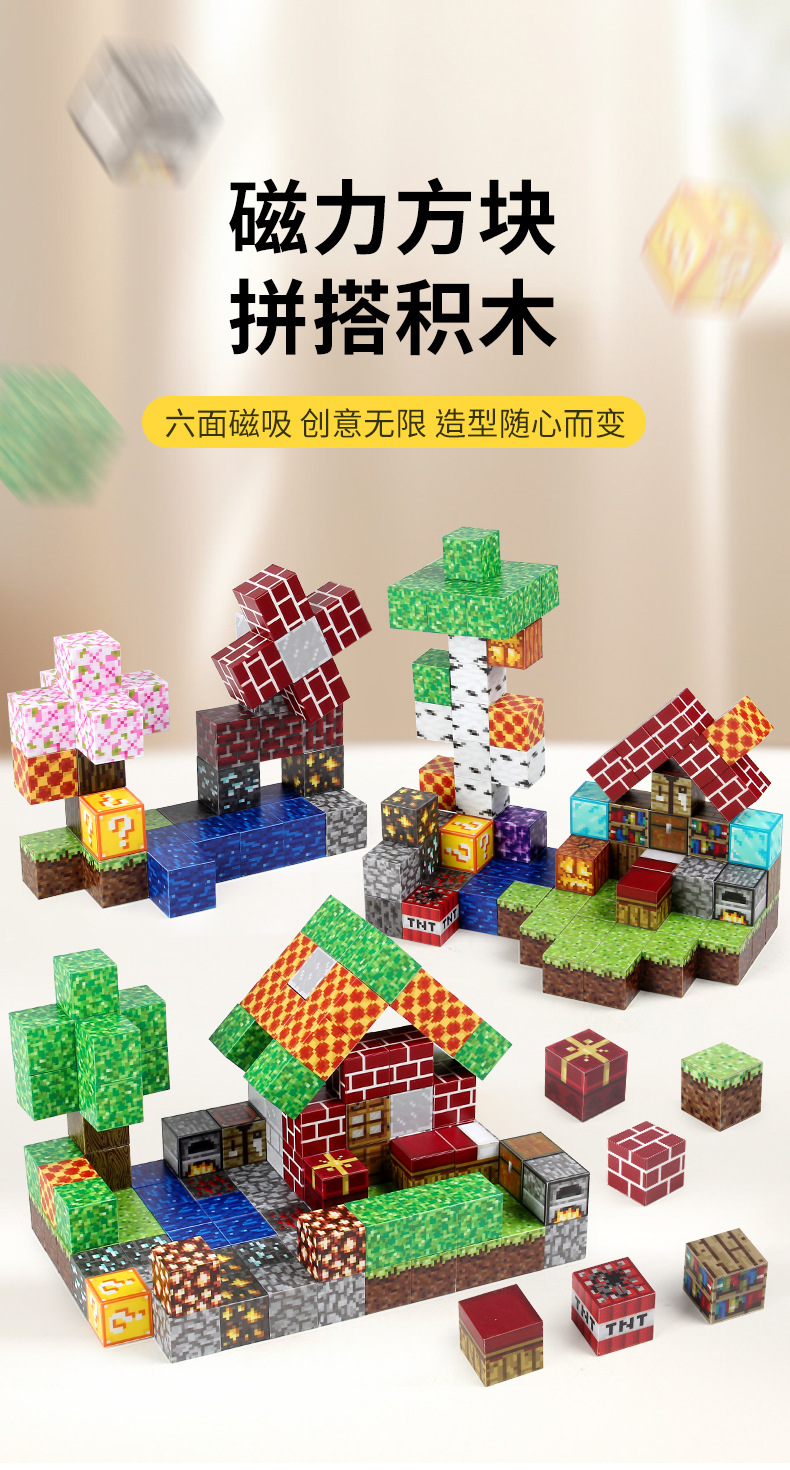亚马逊我的磁吸拼搭积木2.3cm磁力世界方块套装儿童益智积木玩具