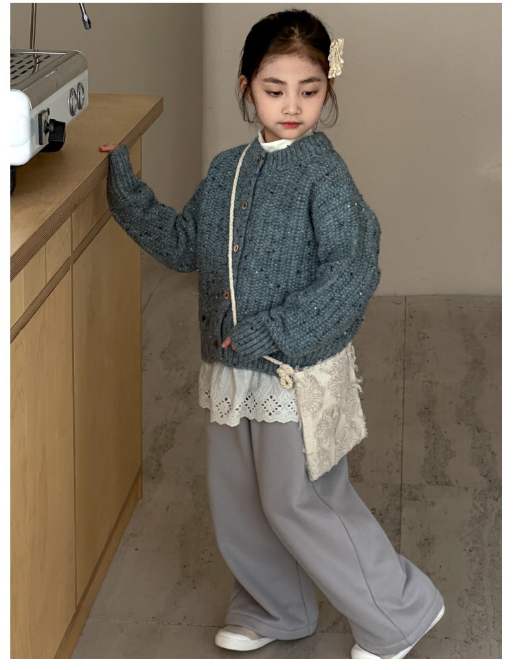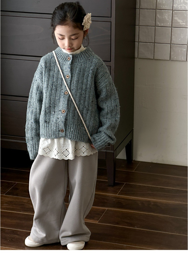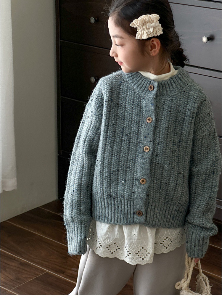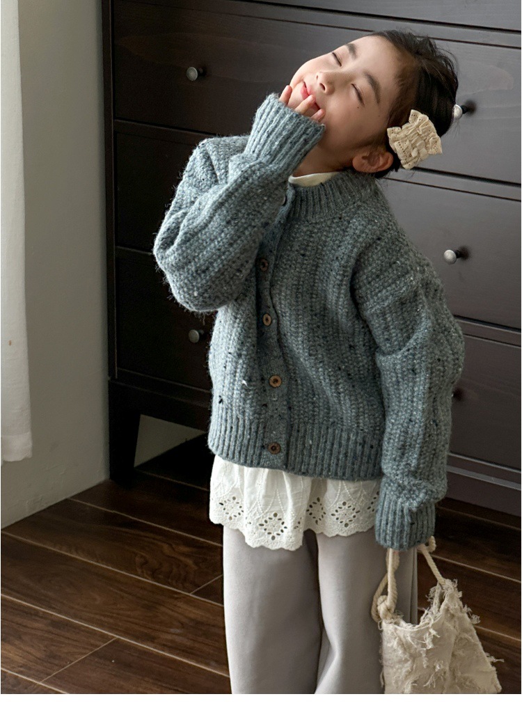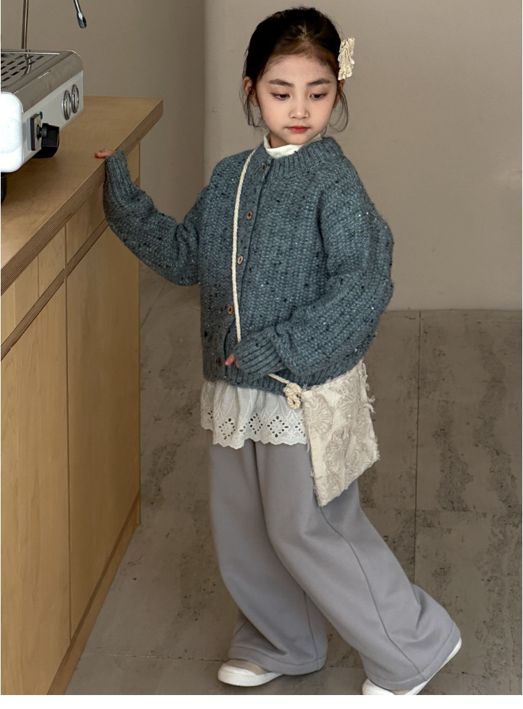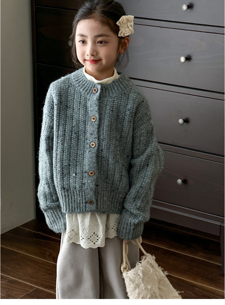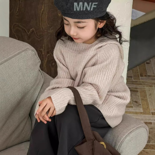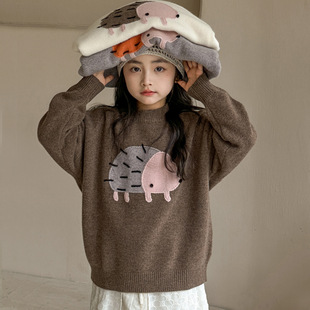 韩国童装女童毛衣秋款2024新款中大童洋气时尚儿童羊毛混纺针织衫