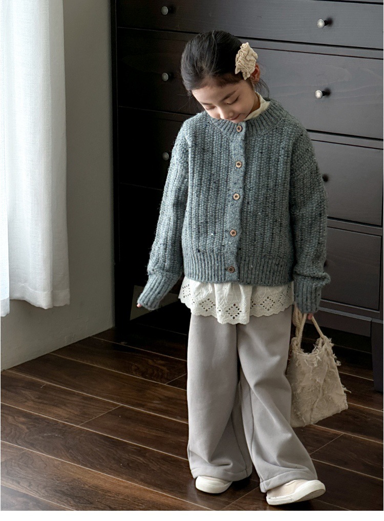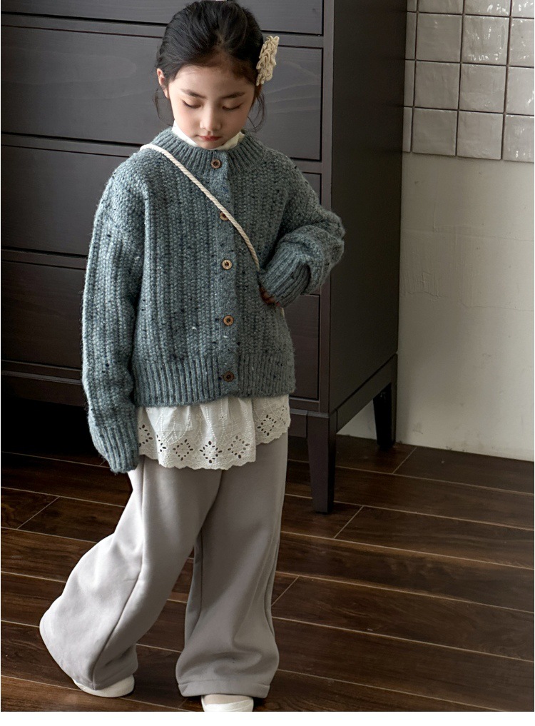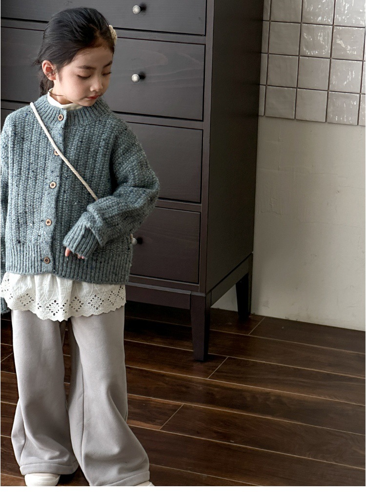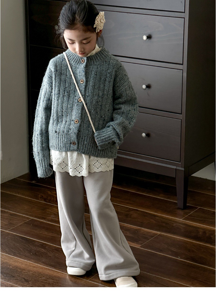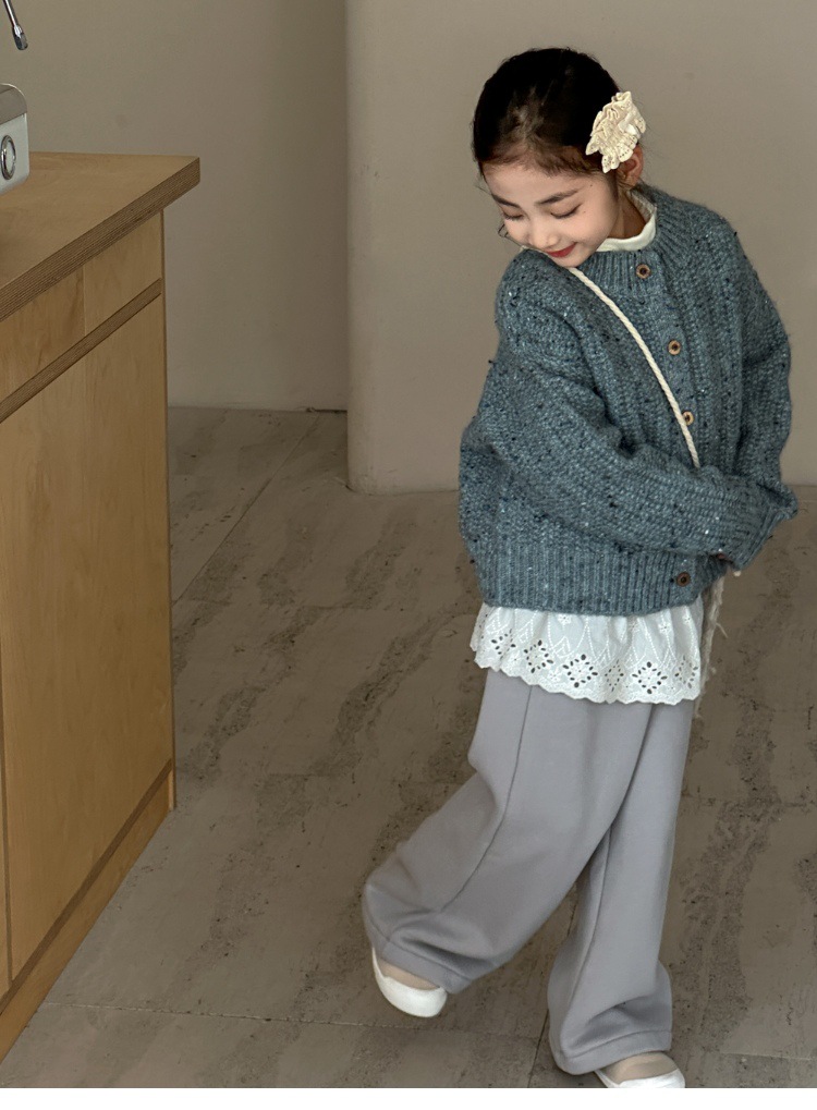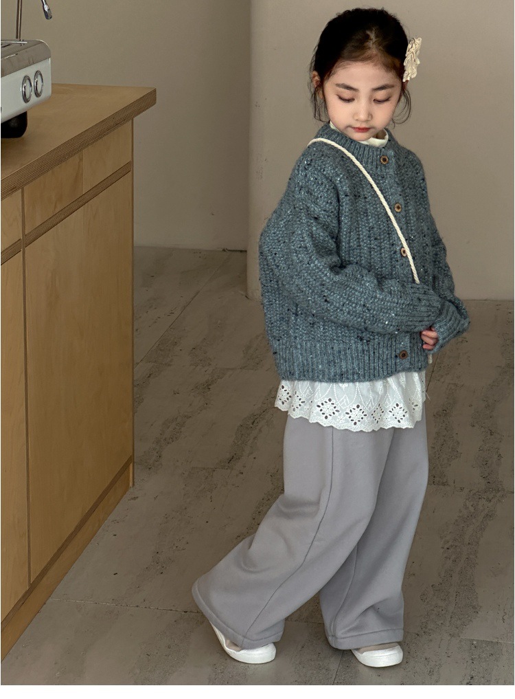 韩国童装女童毛衣秋款2024新款中大童洋气时尚儿童羊毛混纺针织衫