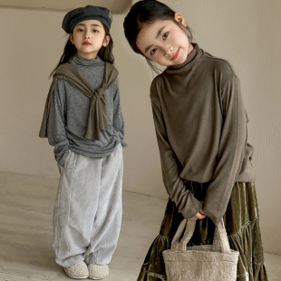 女童长袖T恤2024秋冬新款儿童半高领羊毛混纺打底衫中大童上衣潮