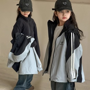 女童冲锋衣外套2024秋冬新款儿童加绒保暖防风连帽上衣中大童上衣