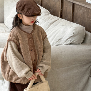 女童摇粒绒外套2024秋冬新款男童洋气拼接针织开衫休闲儿童毛毛衣