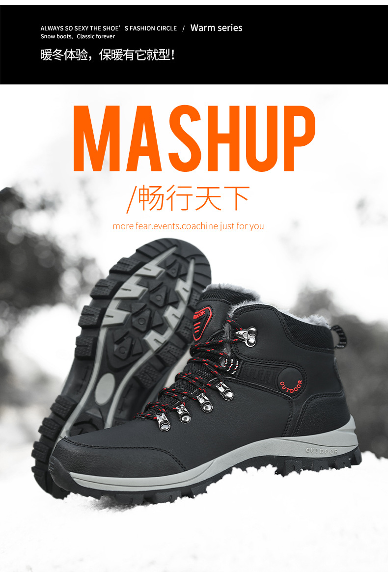 겨울 플러스 사이즈 기모 등산 신발 따뜻한 스노우 부츠 남성 신발 남성 하이 탑 코튼 부츠 두꺼운 단독 야외 캐주얼 신발