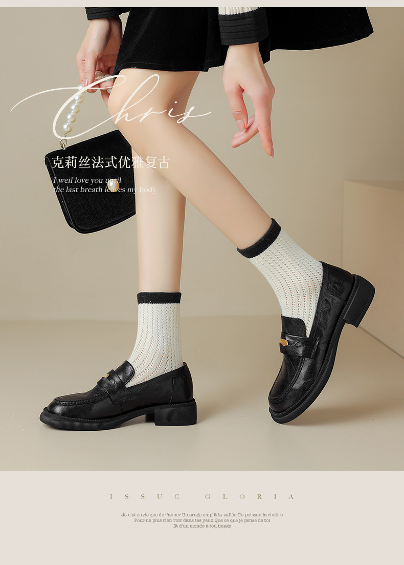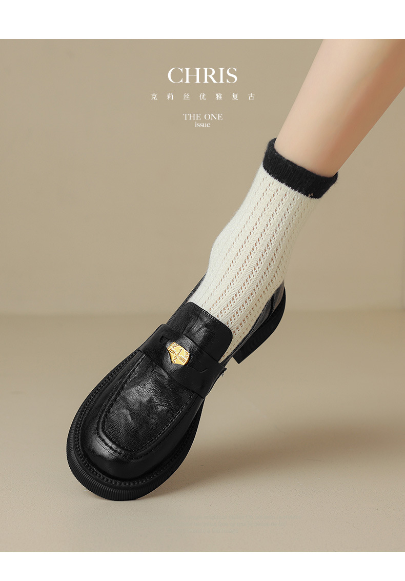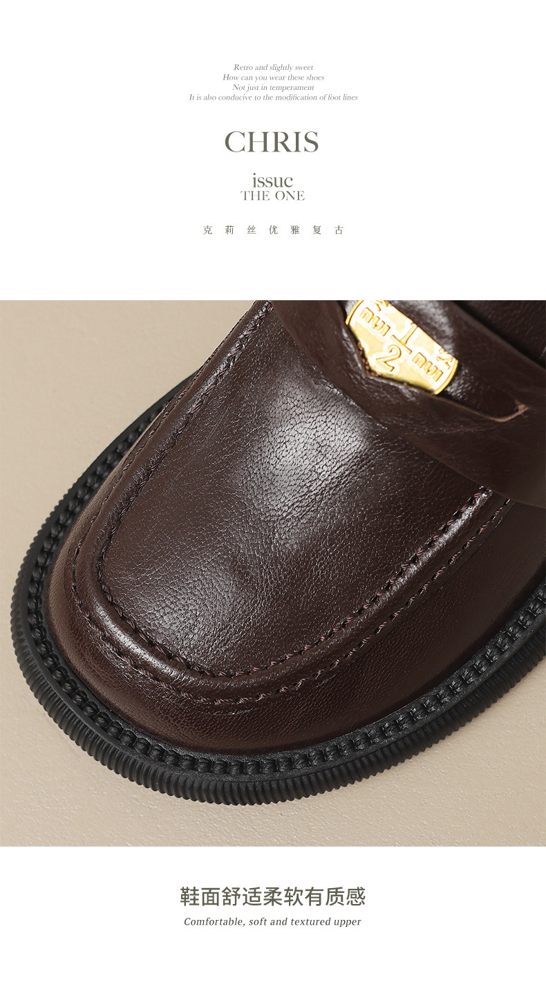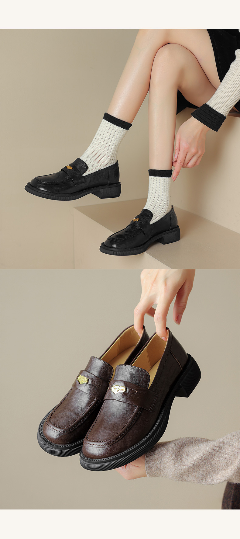 영국 스타일 양가죽 로퍼 여성 청키 힐 2024 봄과 가을 새로운 라운드 발가락 딥 입 싱글 레이어 신발 빈티지 골드 코인 가죽 신발스토어 가기