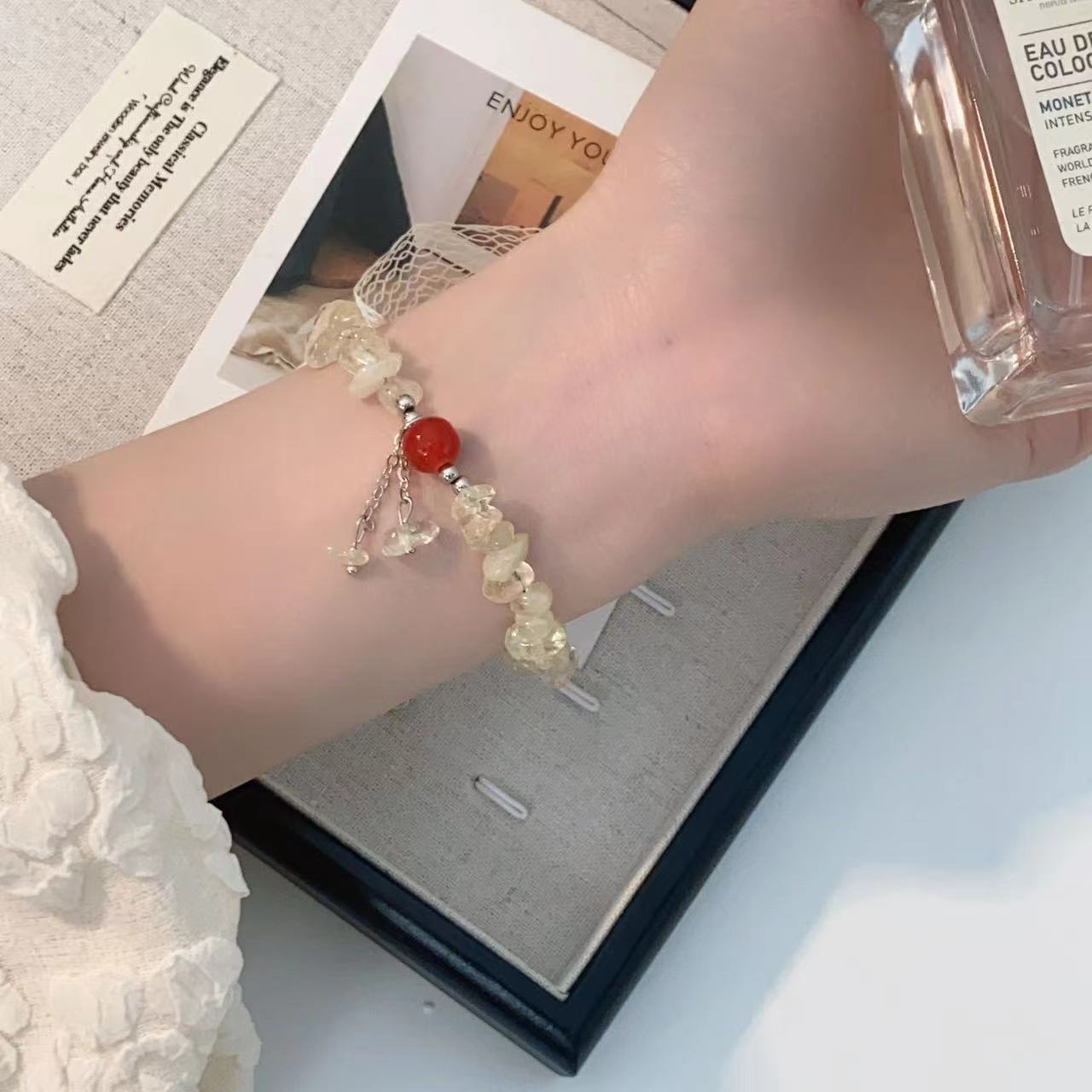 • 딸기 크리스탈 자갈 싱글 서클 팔찌