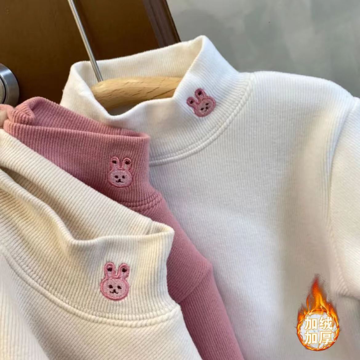가을과 겨울 새 기모 두꺼운 여자 어린이 한국 원피스 벨벳 토끼베이스 셔츠 올매치 내부 자수