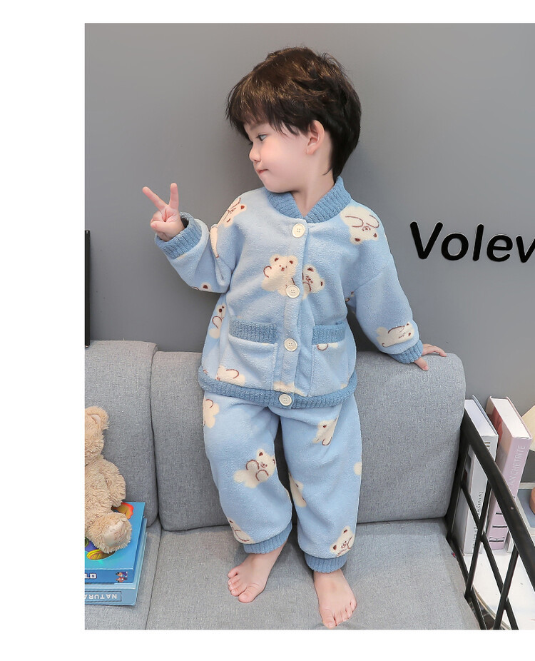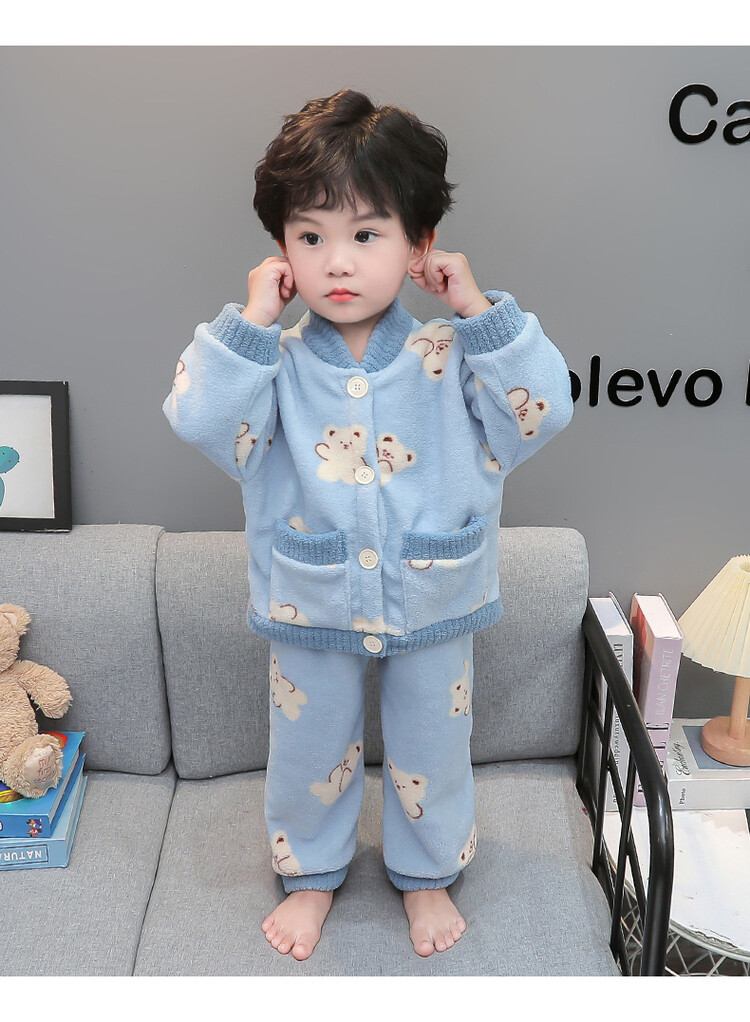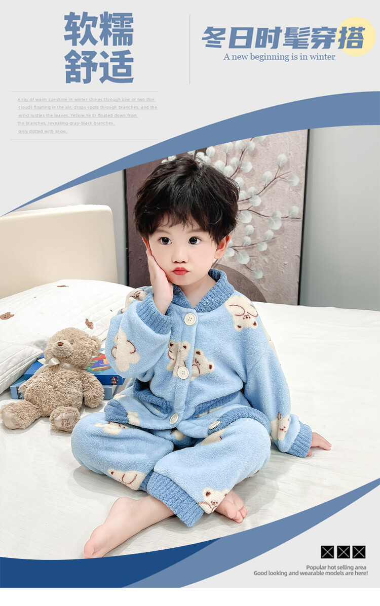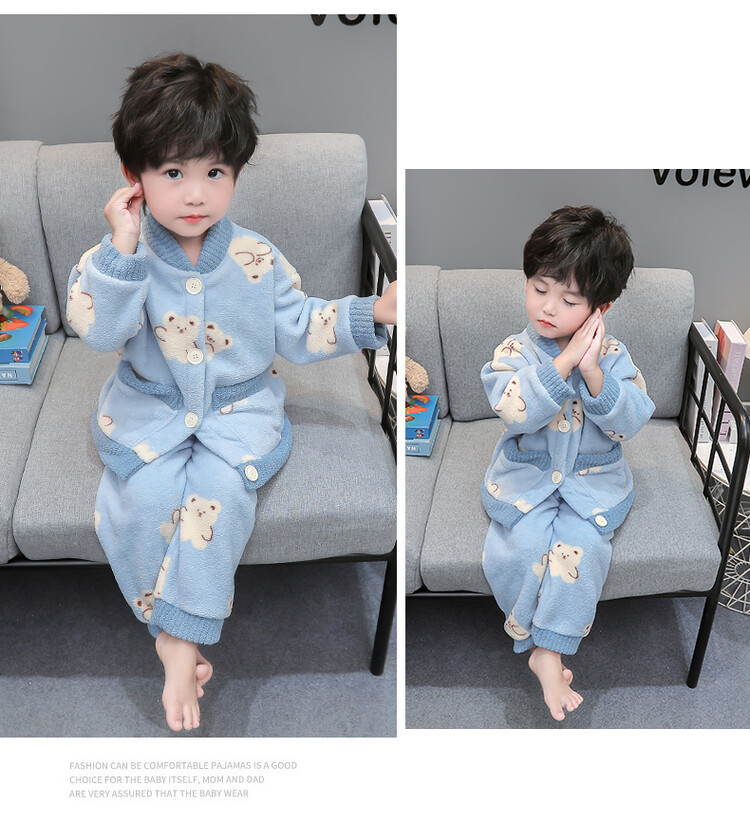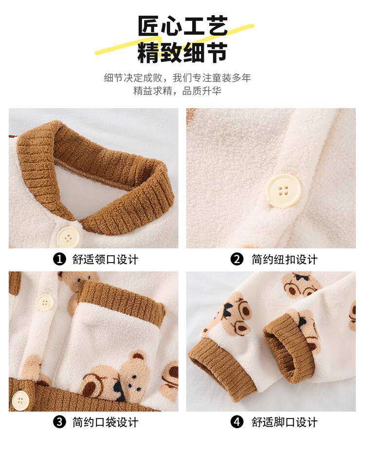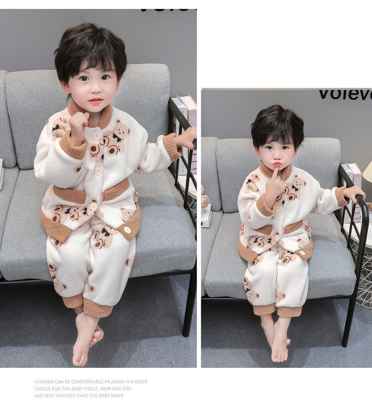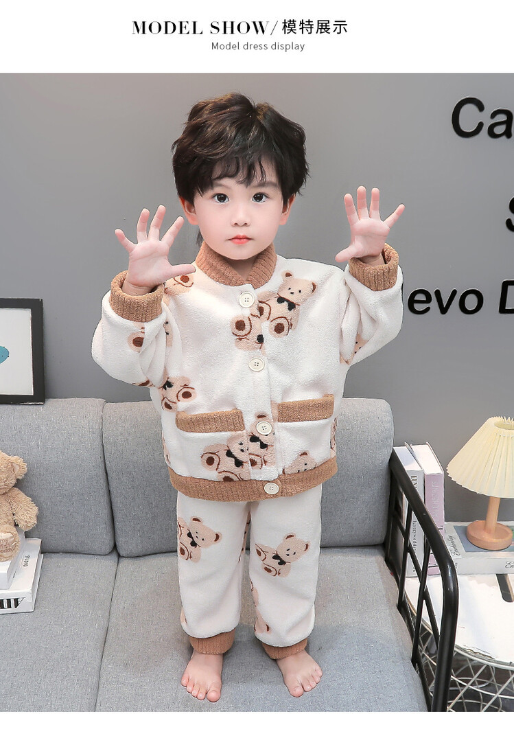 어린이 산호 양털 파자마 소년의 가을과 겨울 두꺼운 소년의 아기의 플란넬 홈 옷 만화 카디건 세트스토어 가기