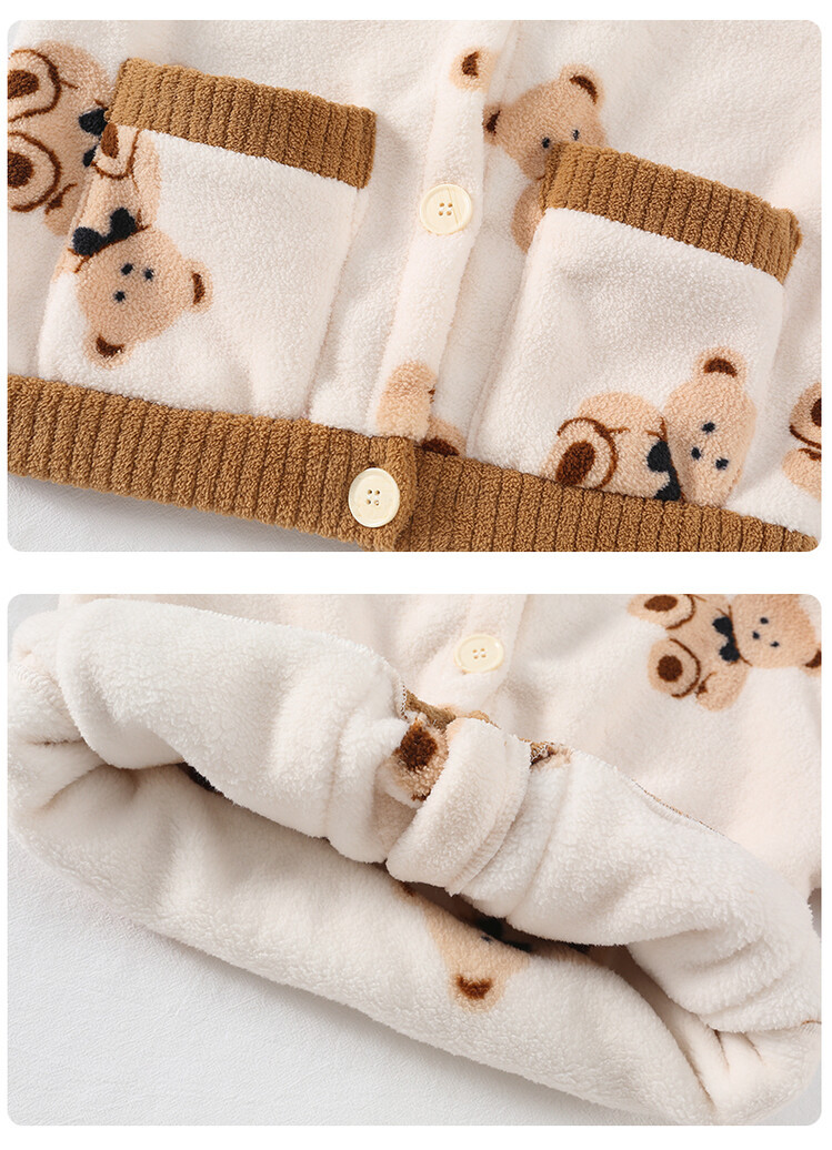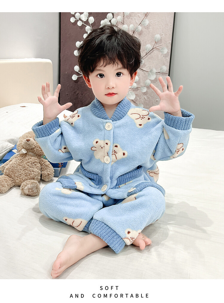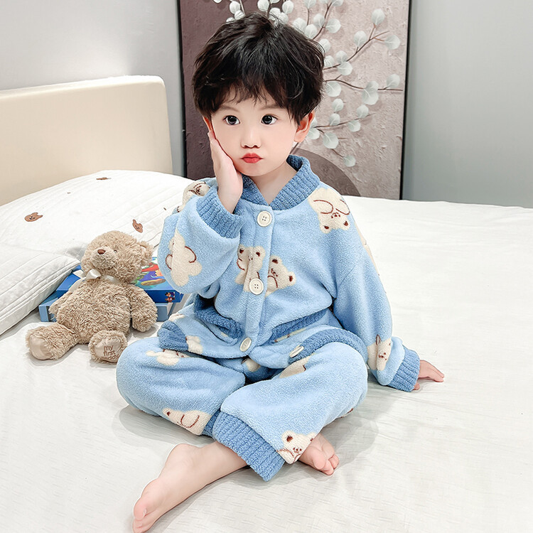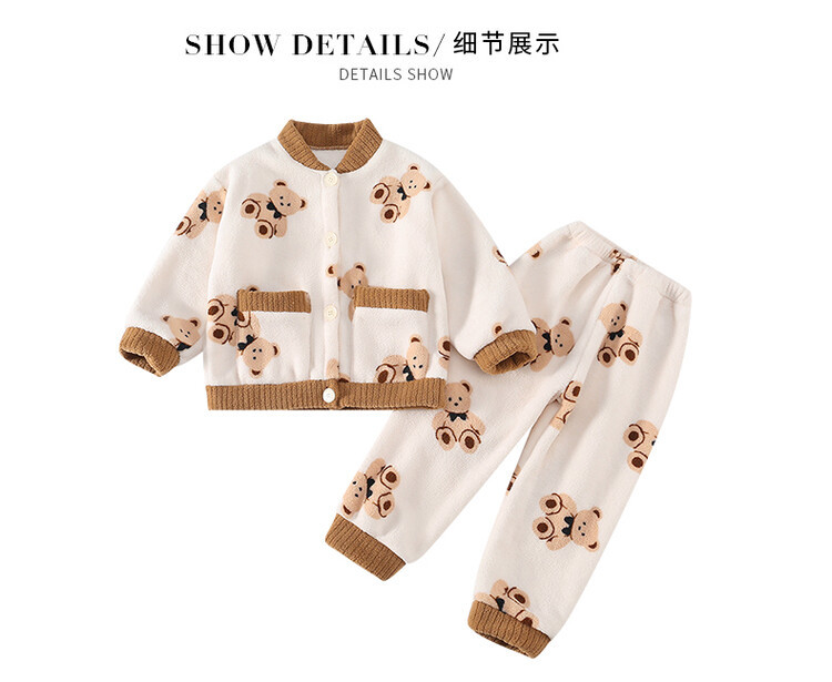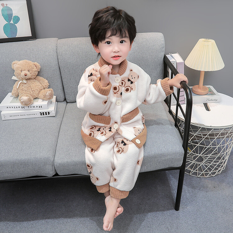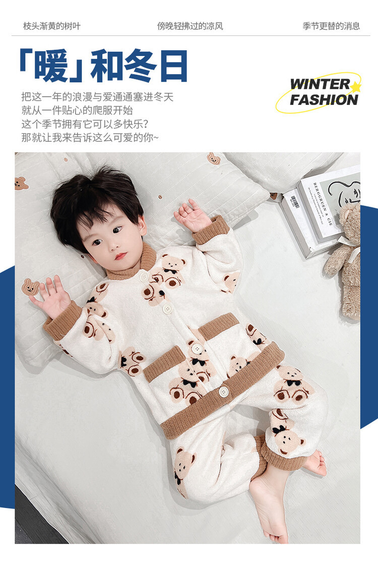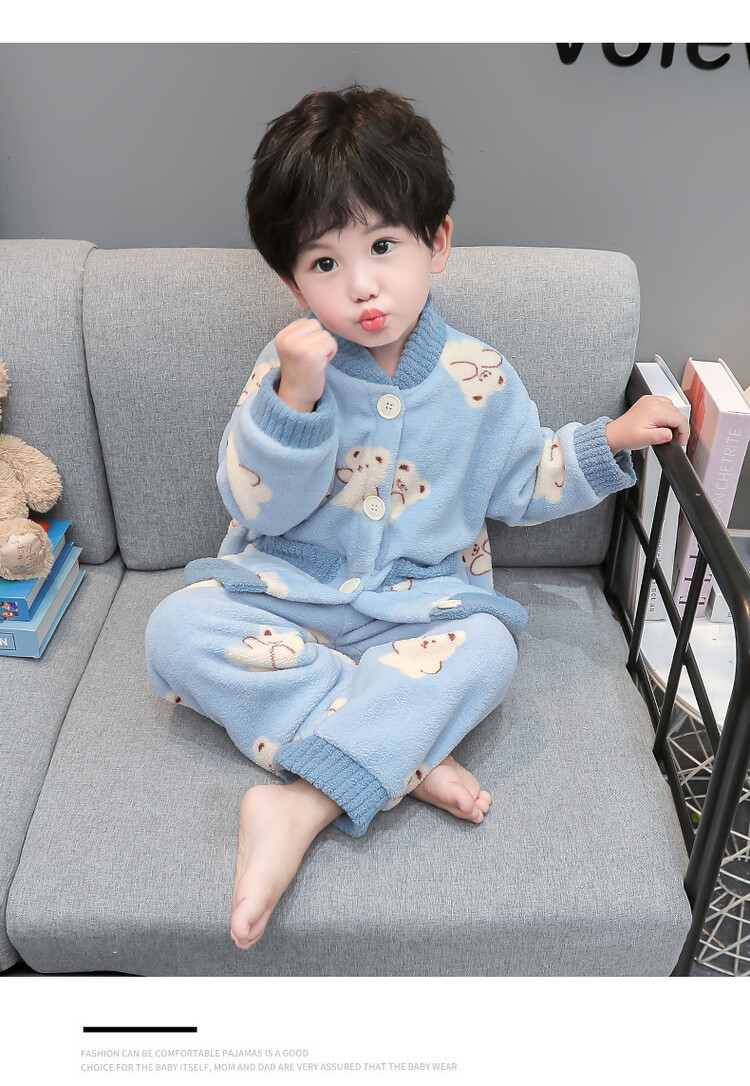 어린이 산호 양털 파자마 소년의 가을과 겨울 두꺼운 소년의 아기의 플란넬 홈 옷 만화 카디건 세트스토어 가기