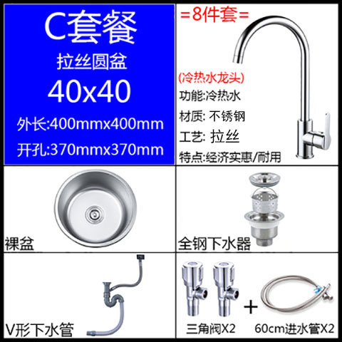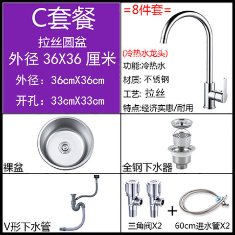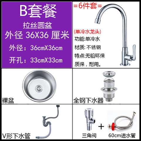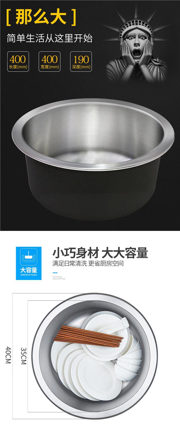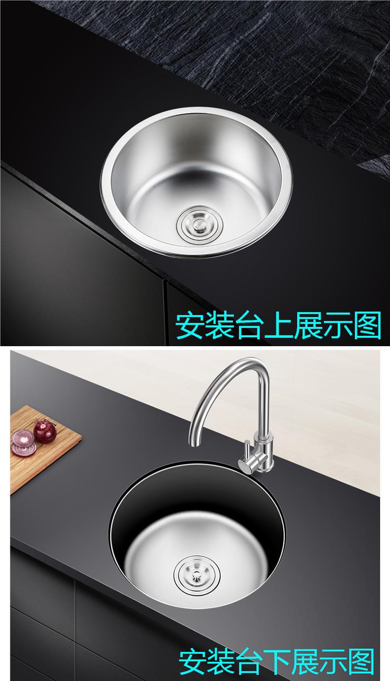 주방 스테인레스 스틸 라운드 스몰 사이즈 싱크 단일 그루브 야채 세척 분지 두꺼운 발코니 바 미니 세척 핸드 풀 단일 분지스토어 가기