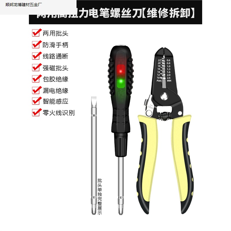• 이중 목적 컬러 광전 펜 드라이버 + 7-in-1 와이어 스트리퍼