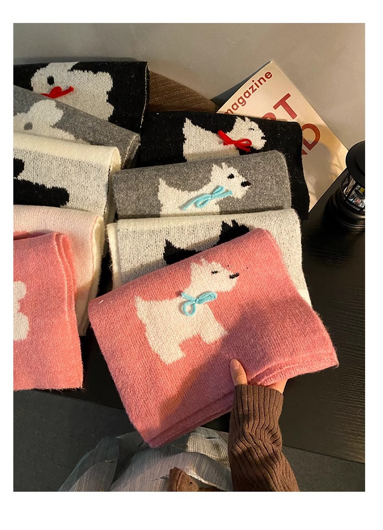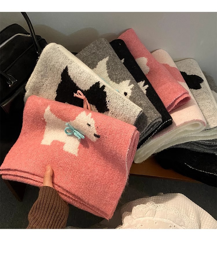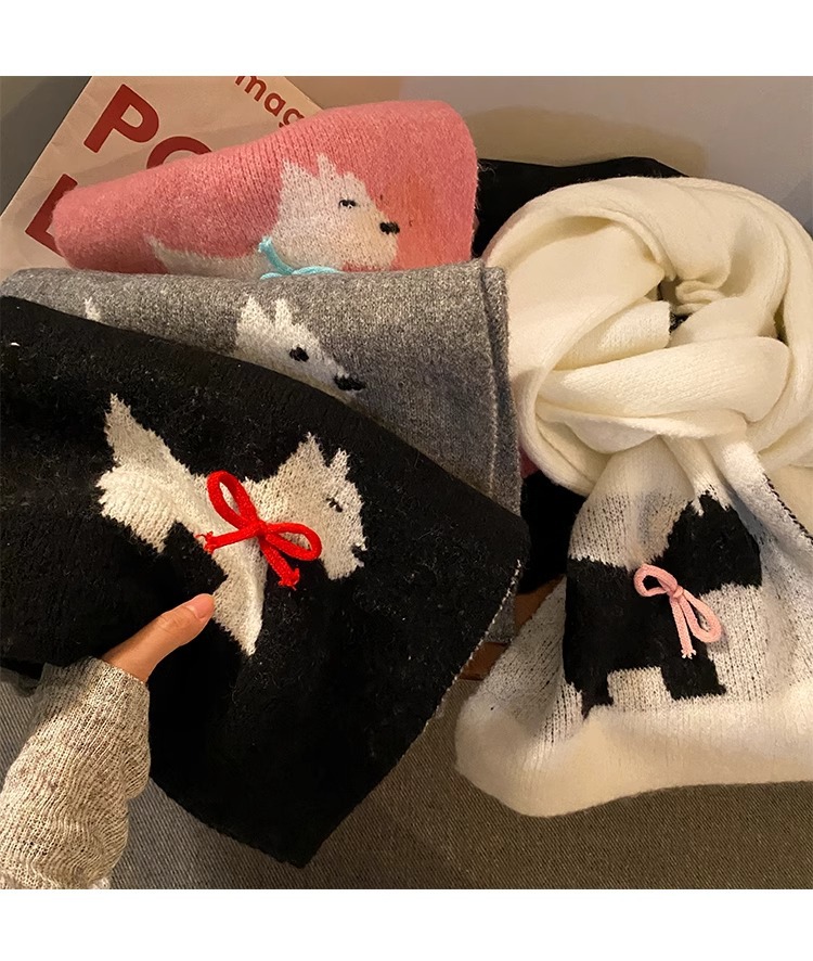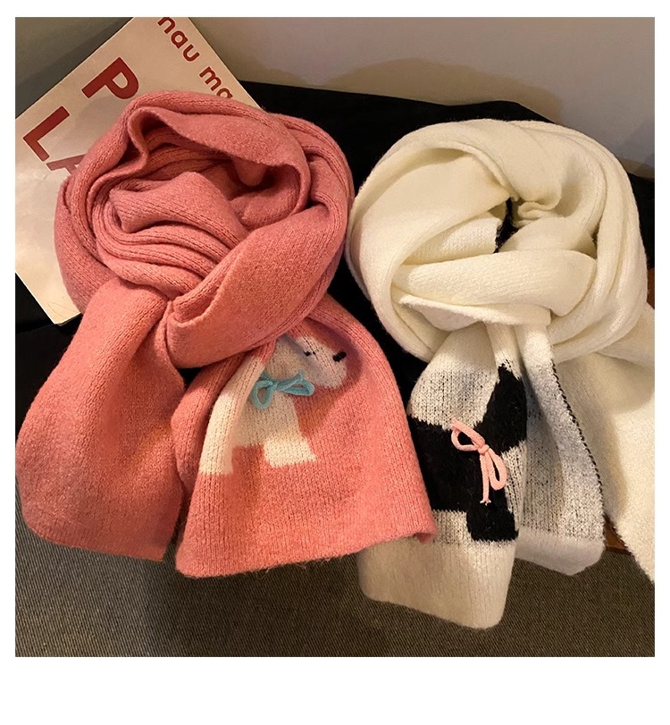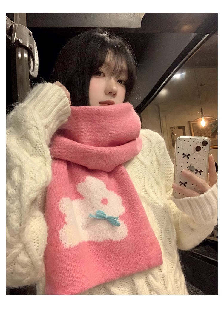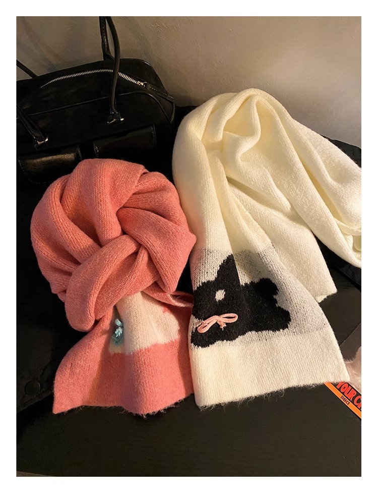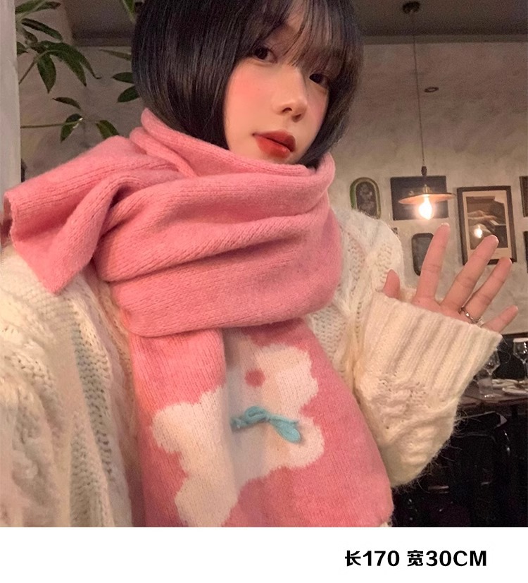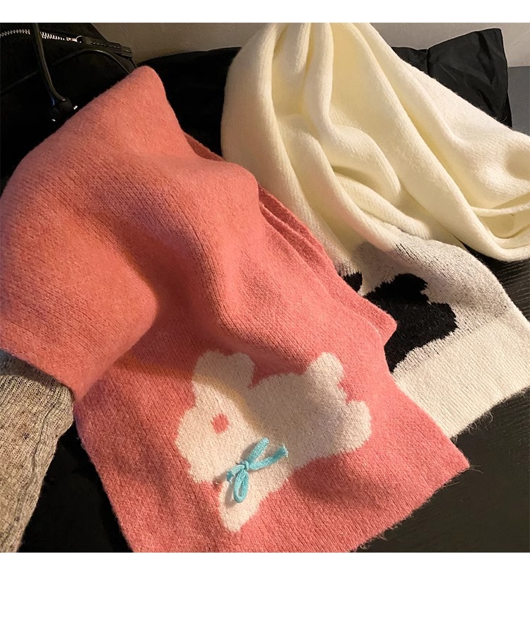 2024 새로운 귀여운 토끼 활 양모 스카프 여자 가을 겨울 일본 학생 올 매치 따뜻한 스카프스토어 가기