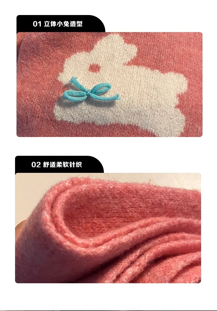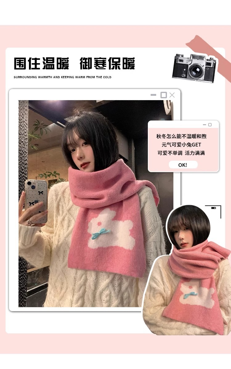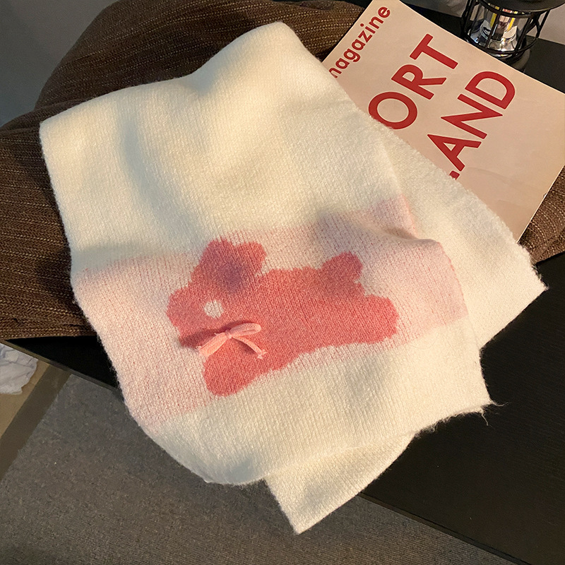 2024 새로운 귀여운 토끼 활 양모 스카프 여자 가을 겨울 일본 학생 올 매치 따뜻한 스카프