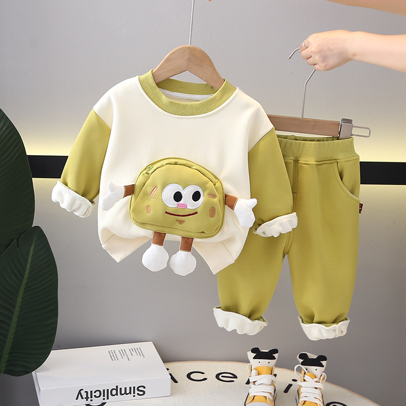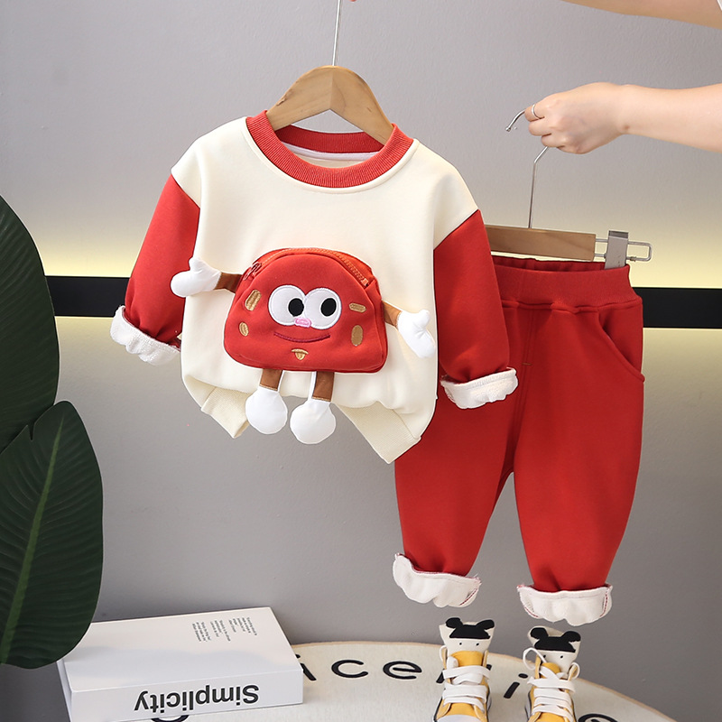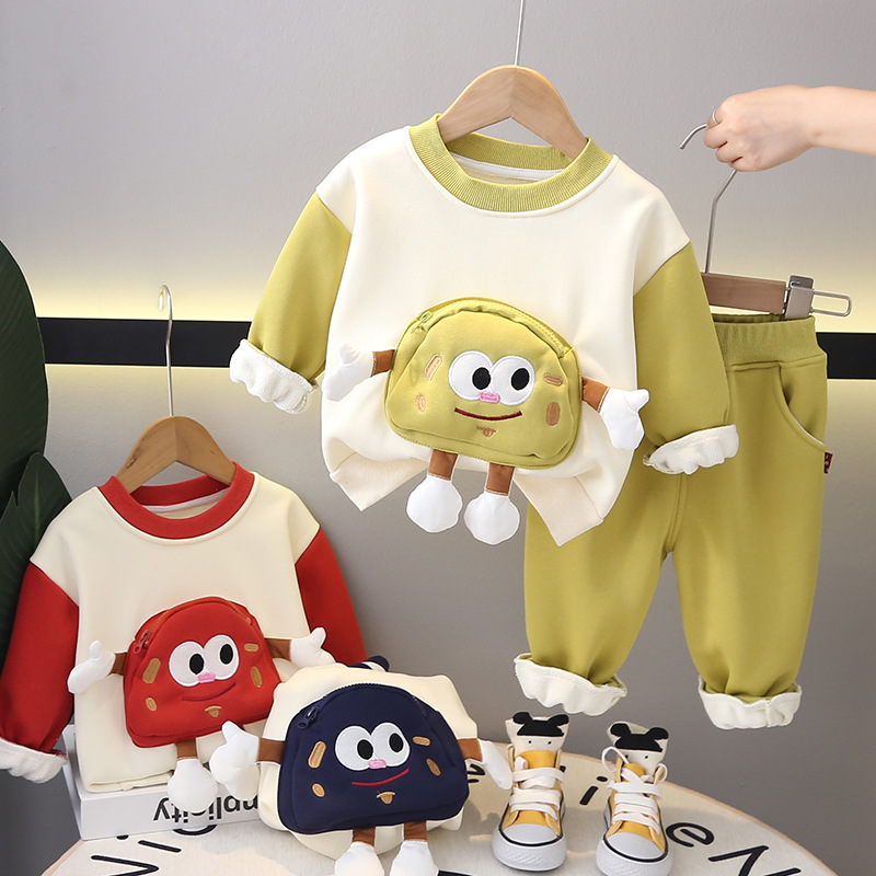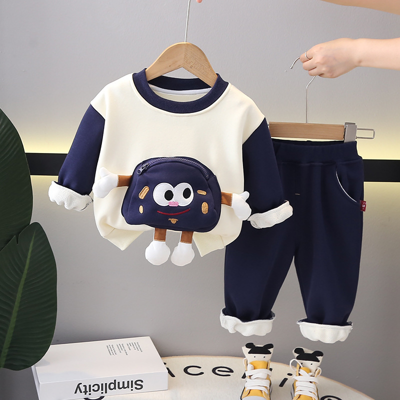 가을과 겨울 2024 한국 아동복 만화 작은 남자 기모 두 조각 겨울 긴 소매 남성과 여성의 어린이 세트 세대 머리카락스토어 가기
