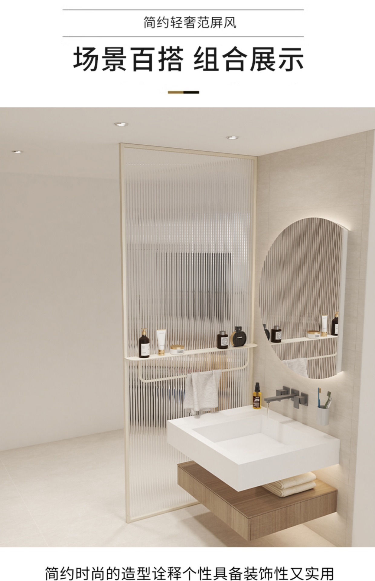 크림 스타일 금속 스테인레스 스틸 철 유리 스크린 파티션 입구 캐비닛 입장 화장실 빛 간단한 현대