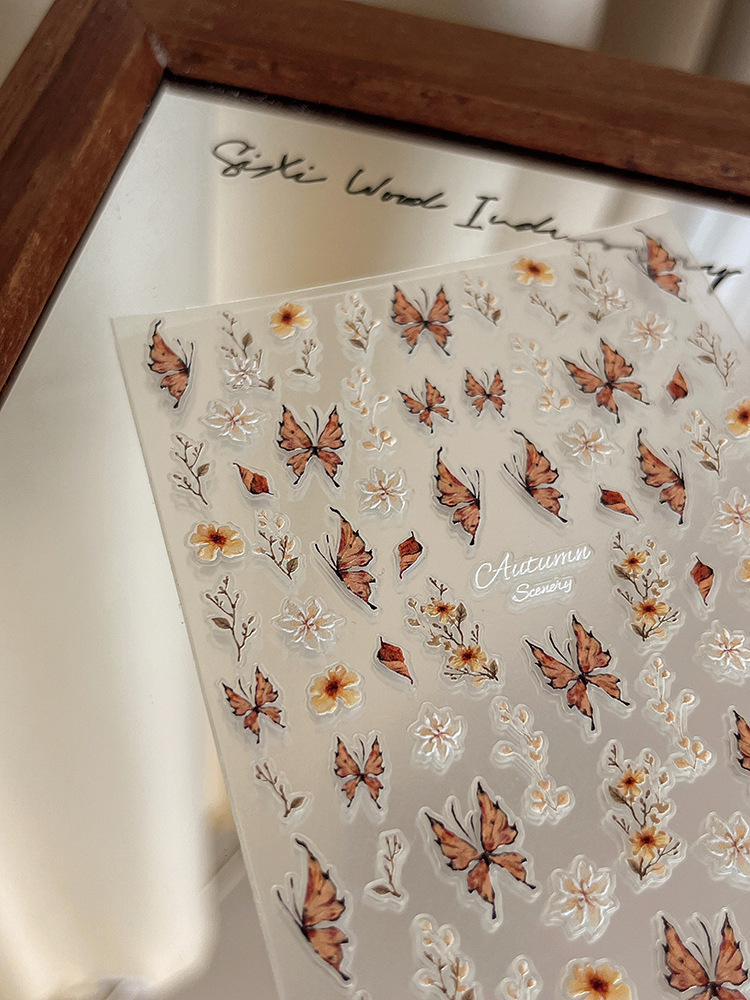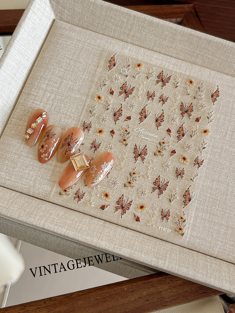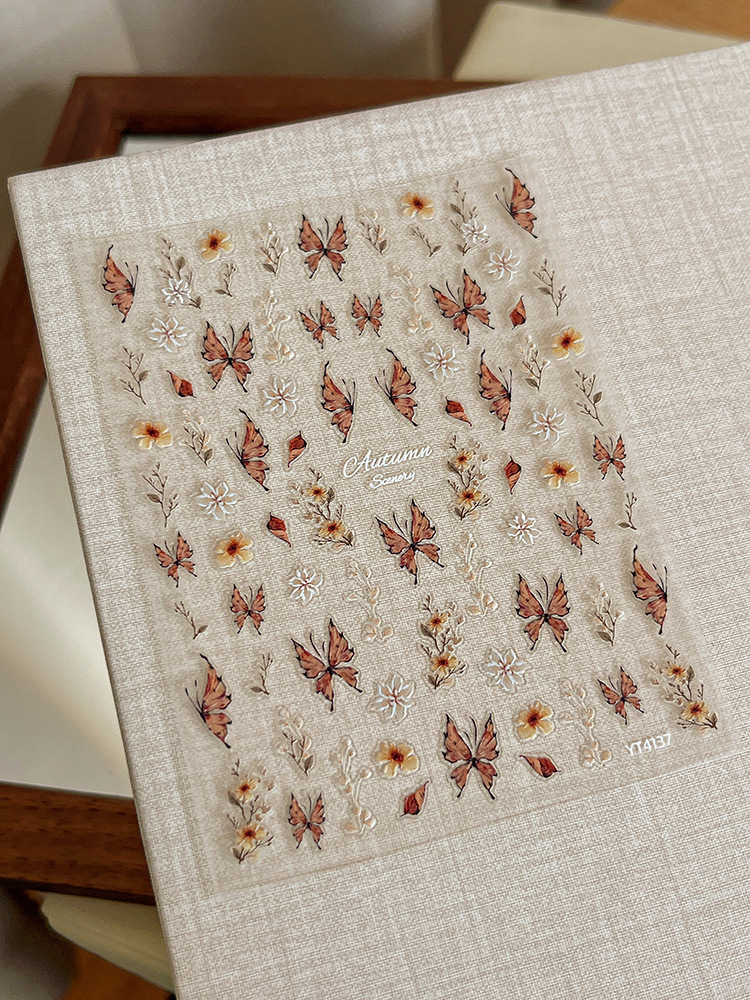 YITU 개미 그림 가을 나비 리 후아 네일 아트 스티커 접착 성 손톱 장식 데칼 YT4137 을 가진 구호 죽은 잎 나비