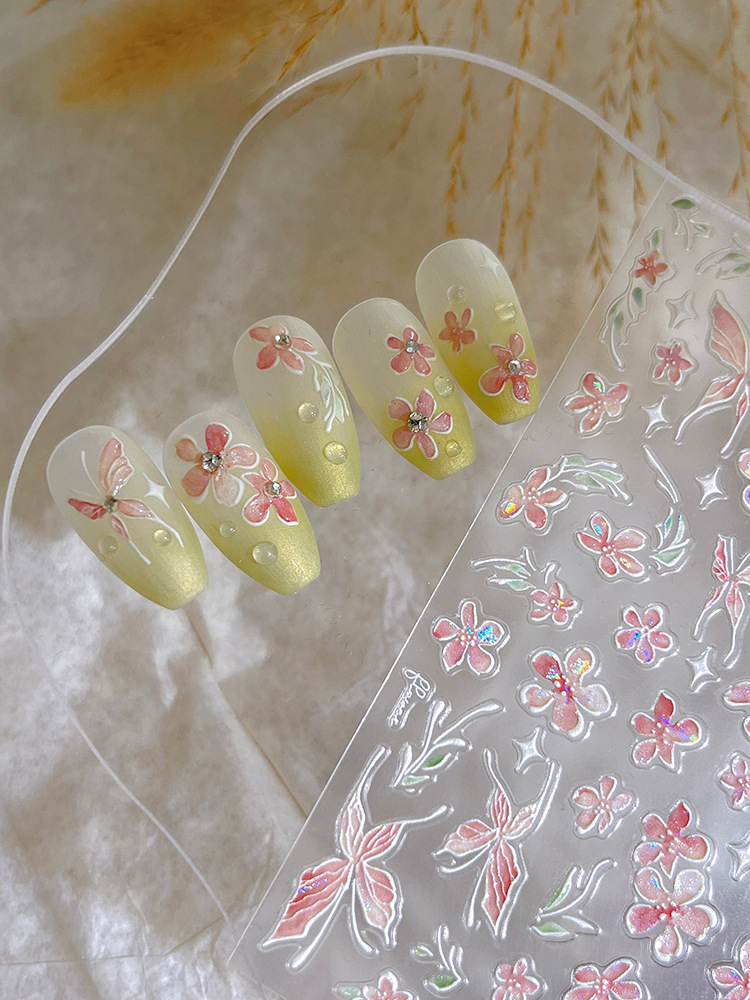 YITU 개미 그림 쉘 빛 3 차원 네일 아트 스티커 5 꽃잎 꽃 나비 접착 네일 장식 스티커 YT4058스토어 가기