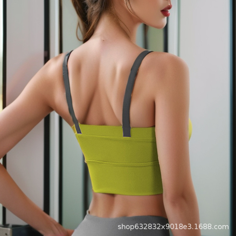 새로운 러닝 피트니스 브라 여성 싱글 숄더 스트랩 콘트라스트 컬러 백 요가 속옷 조끼 원피스 스포츠 속옷스토어 가기