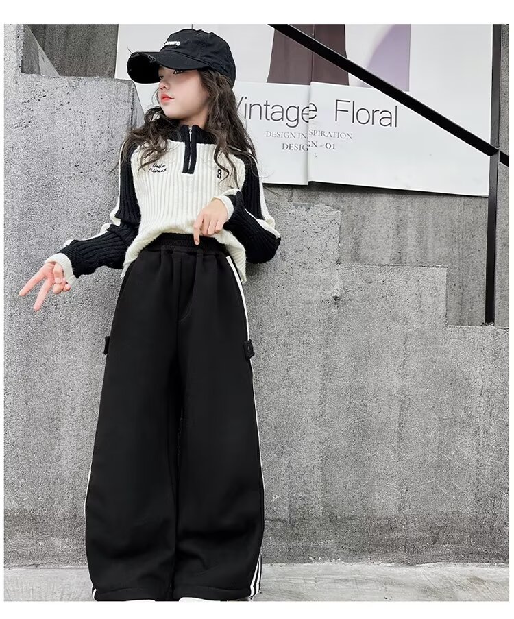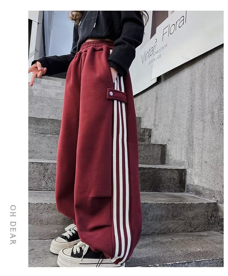 소녀 바지 봄과 가을 바지 2024 새로운 캐주얼 웨스턴 스타일 크레인 바지 가을 스포츠 바지 큰 어린이 넓은 다리 바지스토어 가기