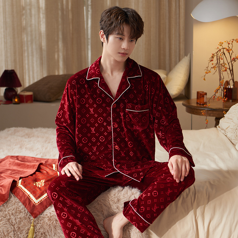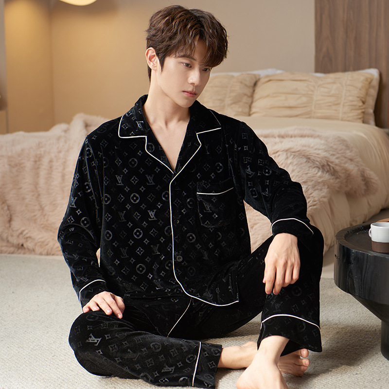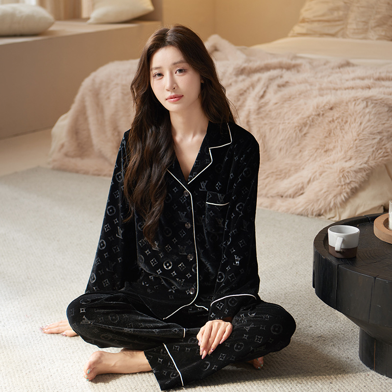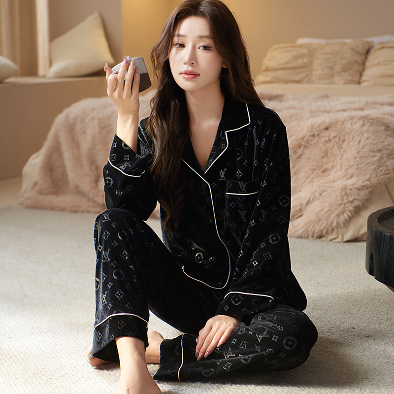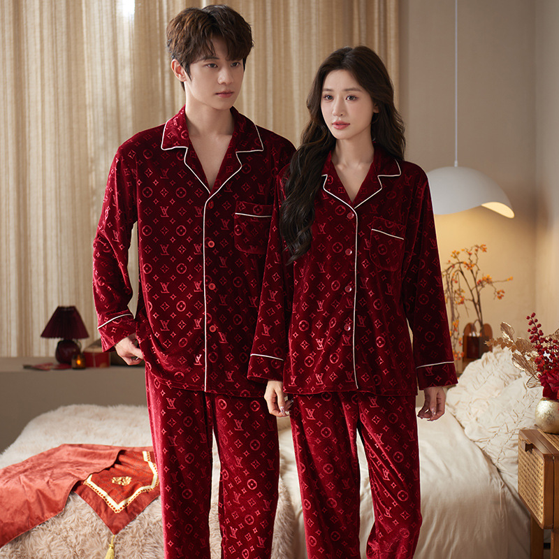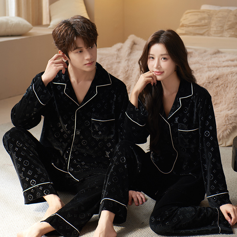 새로운 커플 잠옷 가을과 겨울 황금 벨벳 카디건 캐주얼 세트 겨울 얇은 남성과 여성의 하이 엔드 센스 홈 의류스토어 가기