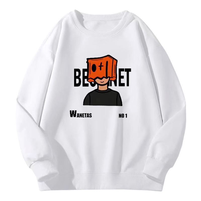 • 화이트 라운드넥 스웨트셔츠 플러스 플리스 스타일-1770【GL】