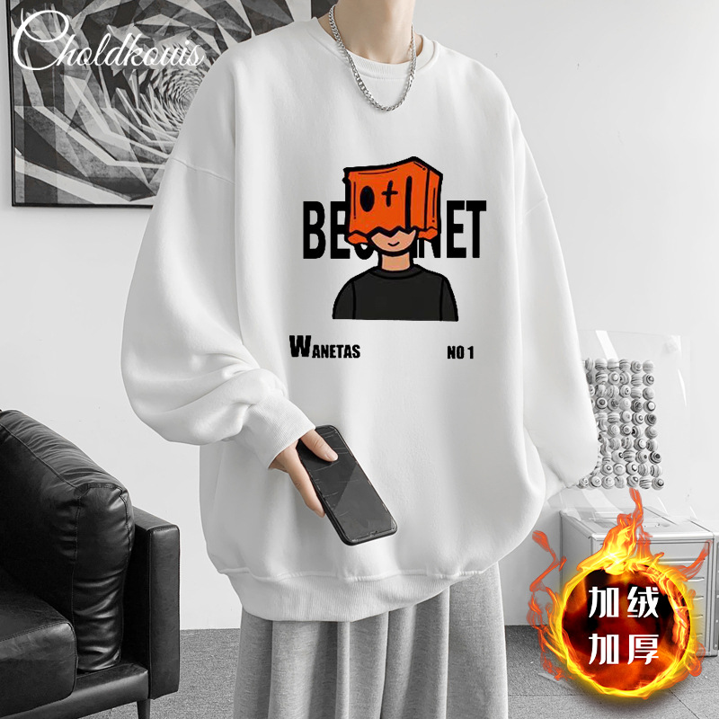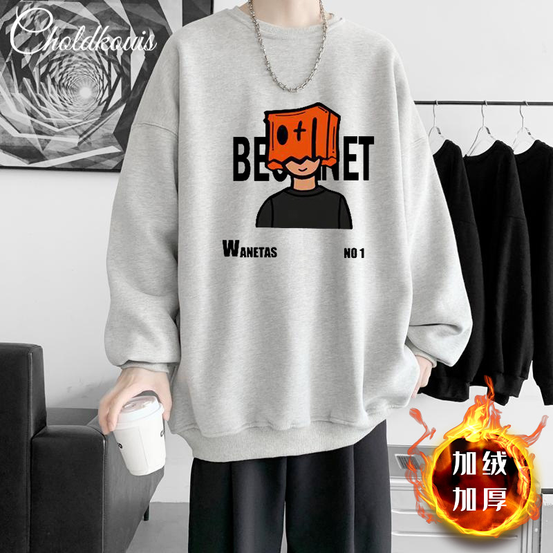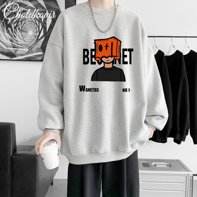 가을과 겨울 새로운 무거운 후드 스웨트 셔츠 커플 남성과 여성을위한 두꺼운 유행 브랜드 느슨한 미국 인쇄 재킷 기모