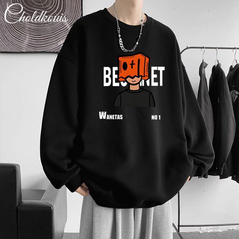 • 블랙 라운드넥 스웨트셔츠 플러스 플리스 스타일-1770【GL】