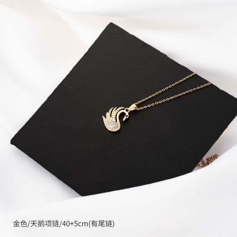 프렌치 스타일 라이트 럭셔리 니치 하이 엔드 올 매치 클랩 체인 스완 펄 목걸이 티타늄 스틸 컬러 프리 쥬얼리 여성용 목걸이