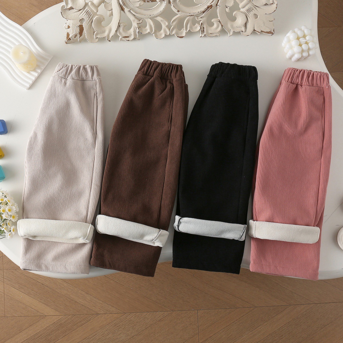 6659 아동복 가을과 겨울 소녀 기모 소녀 캐주얼 솔리드 컬러 기모 스트레이트 세련된 바지스토어 가기