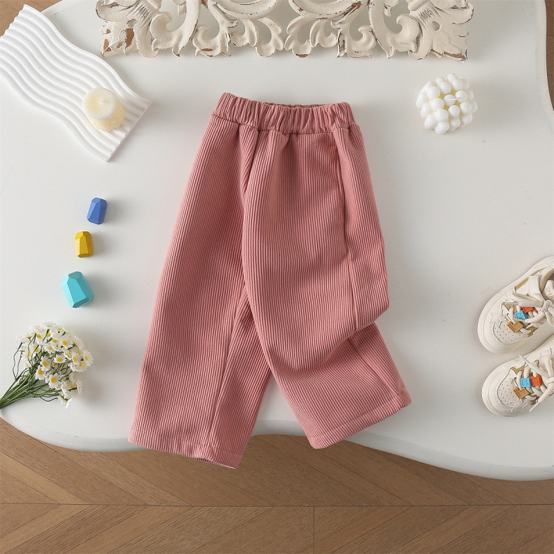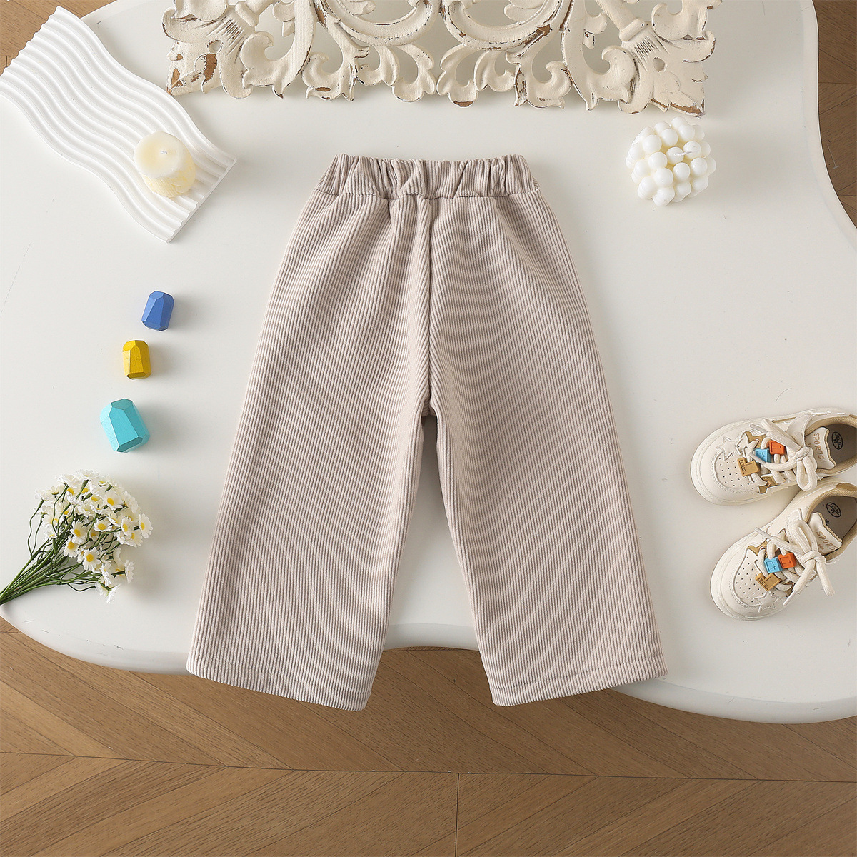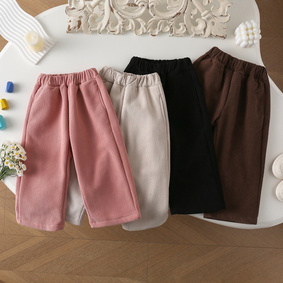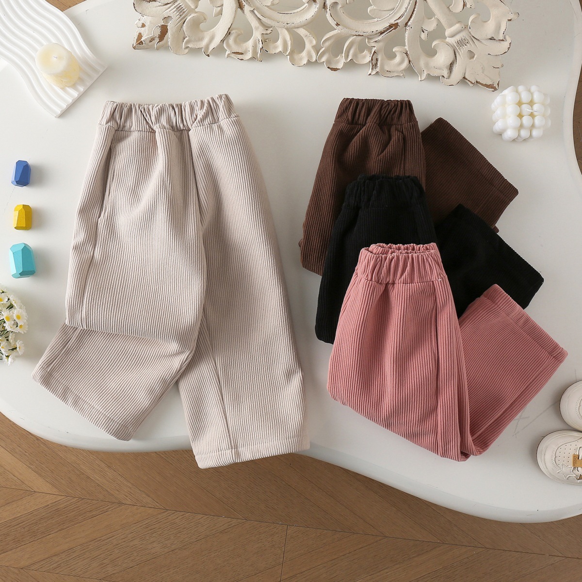 6659 아동복 가을과 겨울 소녀 기모 소녀 캐주얼 솔리드 컬러 기모 스트레이트 세련된 바지