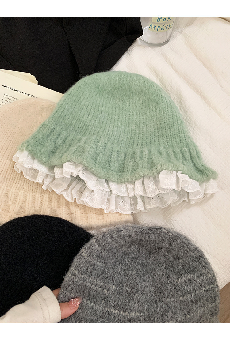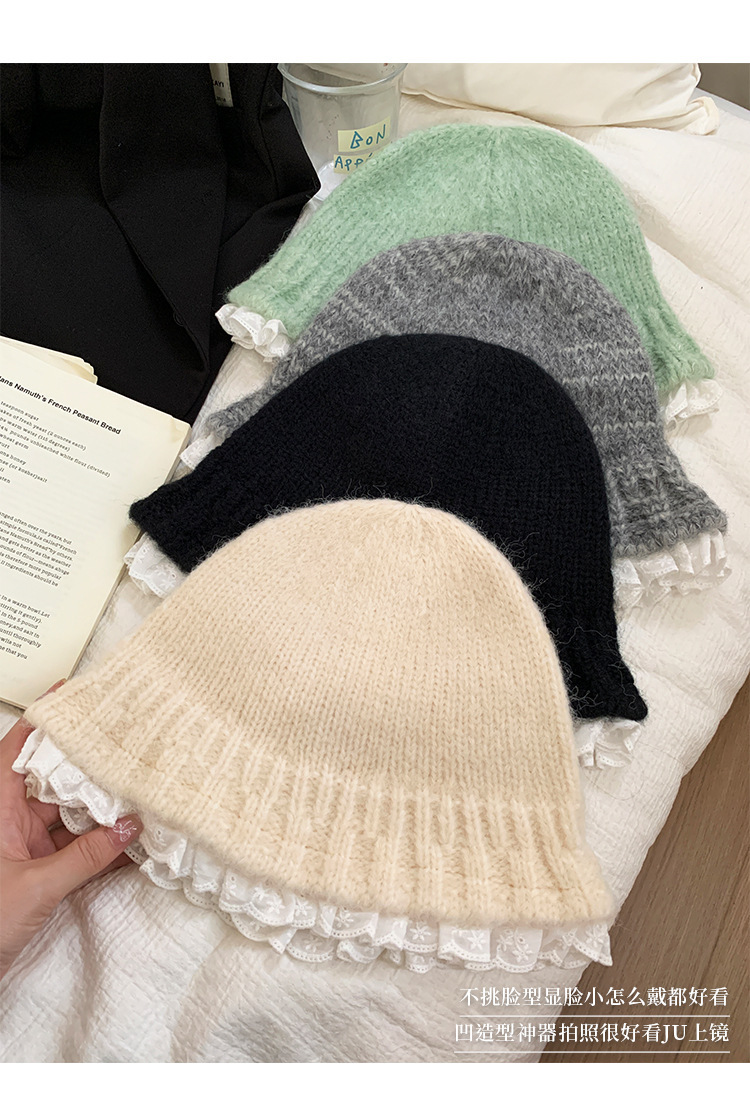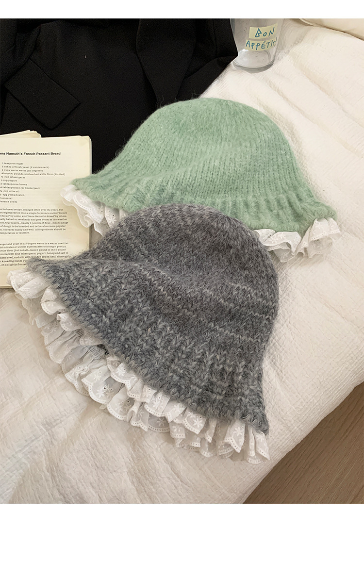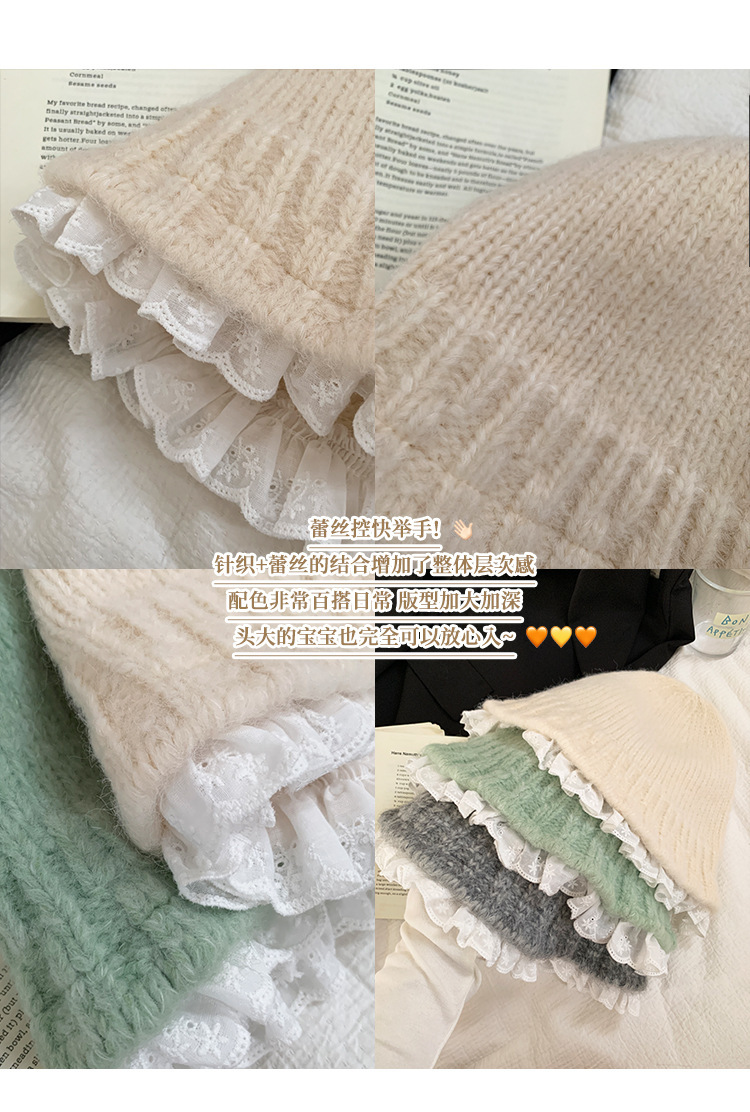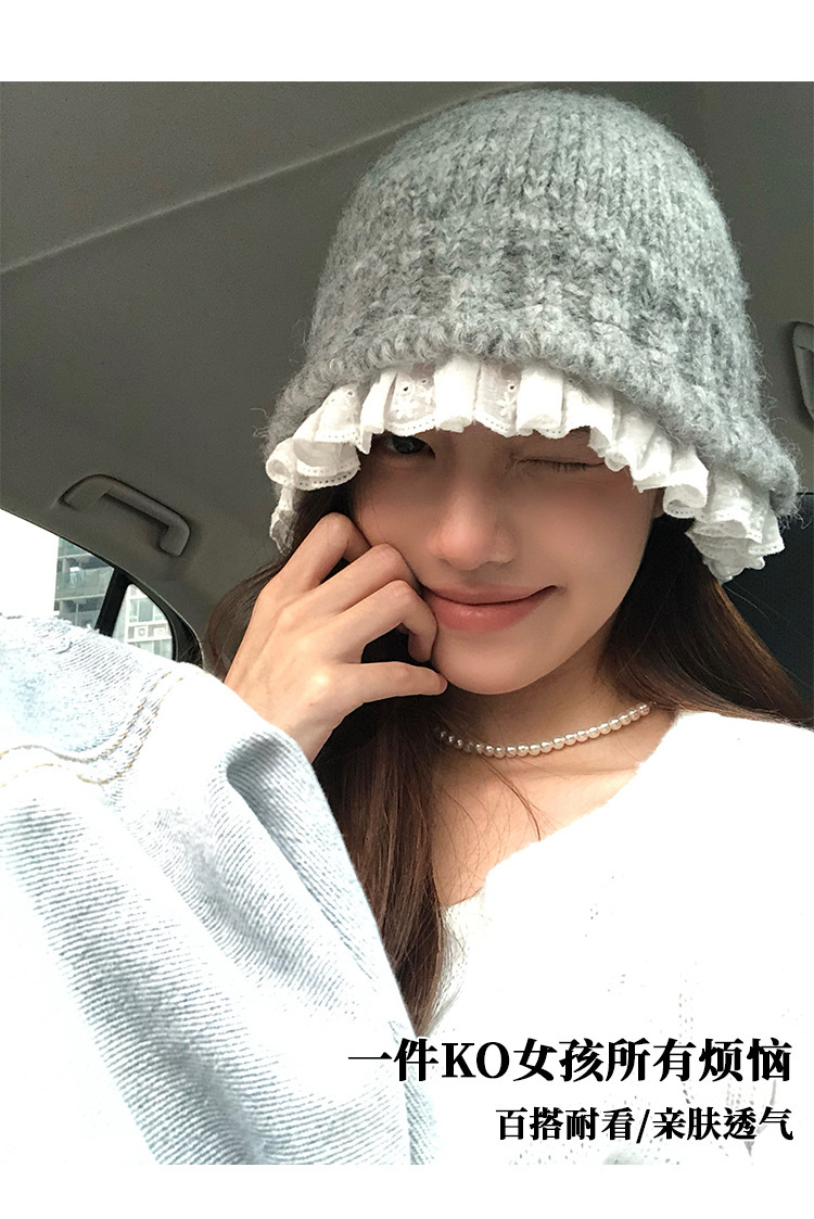 한국 스타일 레이스 니트 어부 모자 여성 가을 겨울 달콤한 따뜻한 얼굴 작은 양모 분지 모자 트렌디