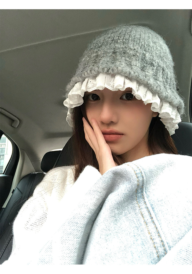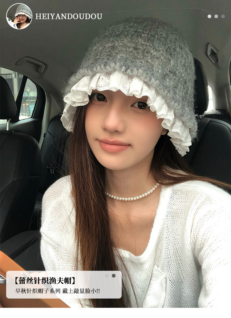 한국 스타일 레이스 니트 어부 모자 여성 가을 겨울 달콤한 따뜻한 얼굴 작은 양모 분지 모자 트렌디스토어 가기