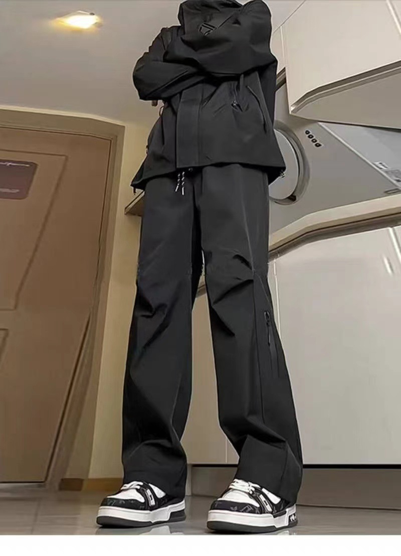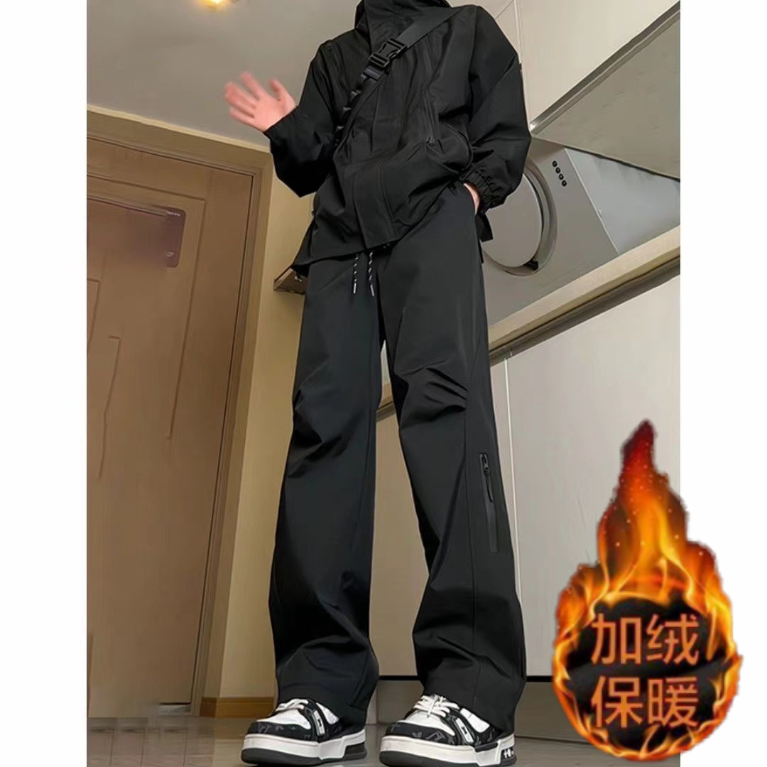 가을 겨울 등산 아웃도어 캐주얼 바지 남성용 트렌디 브랜드 방풍 바지 두꺼운 루즈핏 다용도 속건 기모 스포츠 바지
