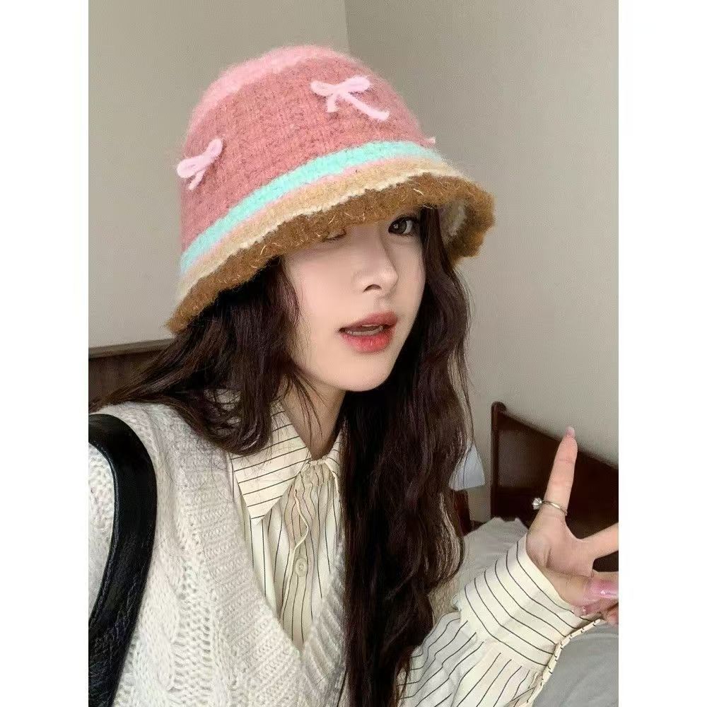 화려한 꽃 니트 어부 모자 여성의 달콤한 귀여운 콘트라스트 컬러 분지 모자 모든 경기 얼굴 쇼 작은 귀 보호 따뜻한 울 모자스토어 가기