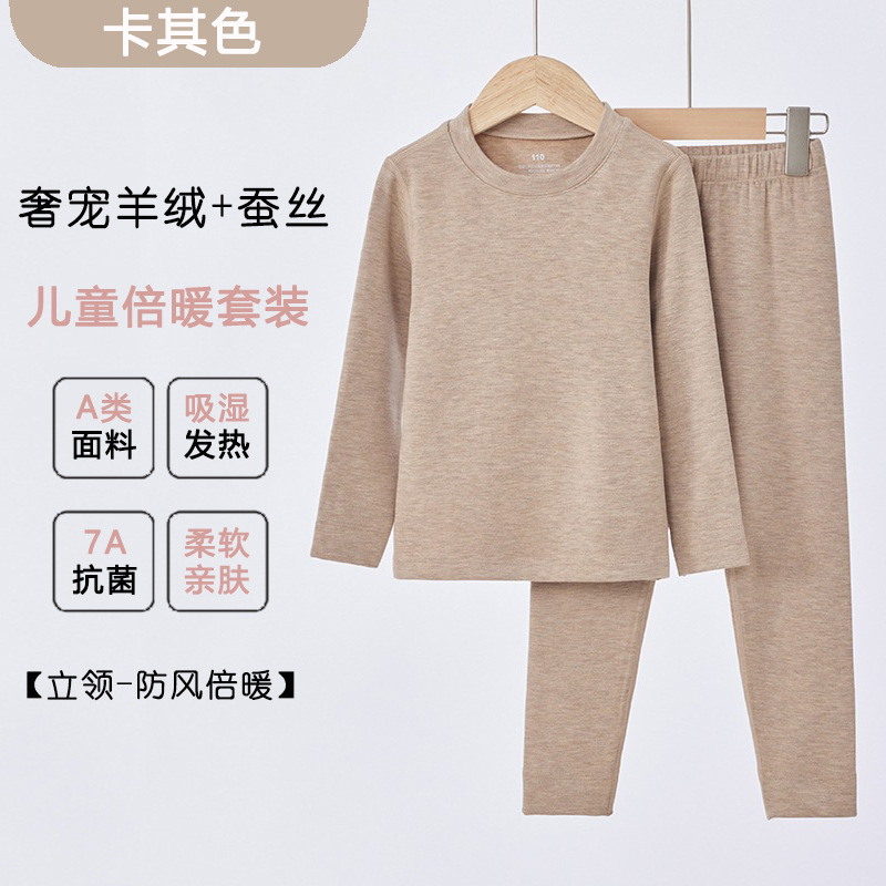 캐시미어 실크 어린이 따뜻한 가정 옷 가을과 겨울 기모 의류 남성과 여성을위한 가을 바지 클래스 독일 벨벳 속옷 세트