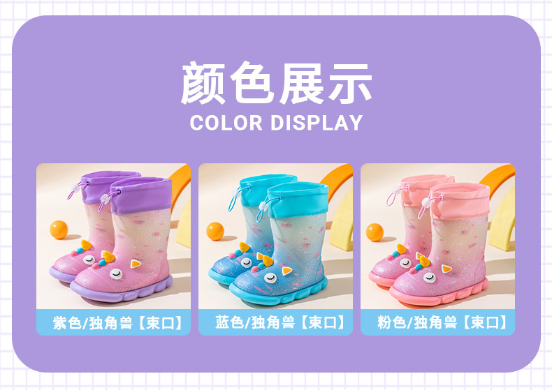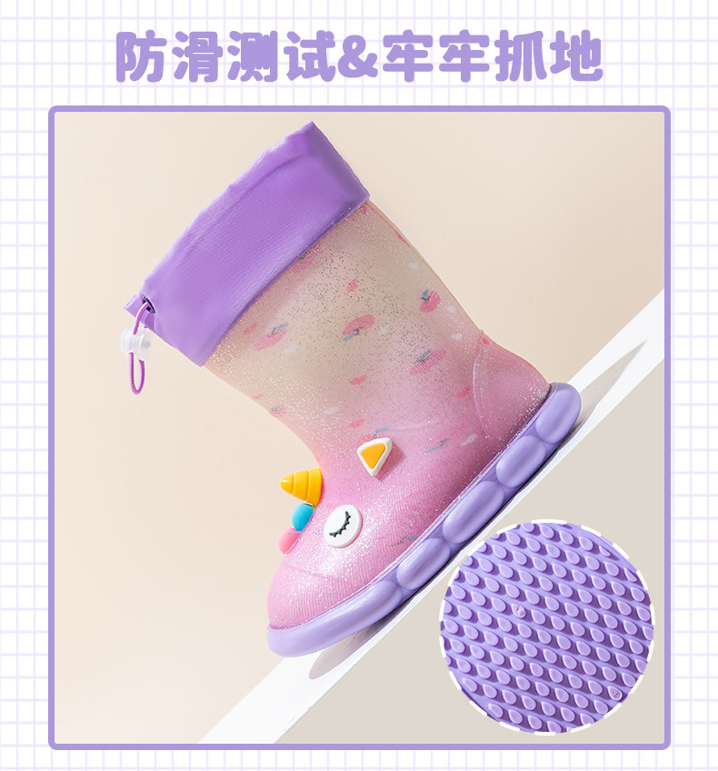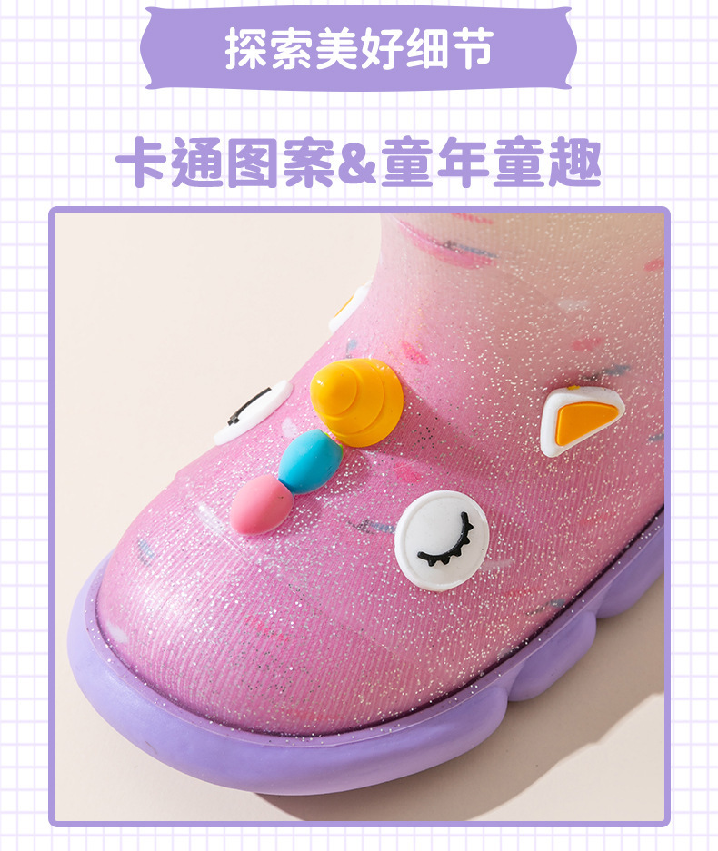 만화 유니콘 방수 부츠 어린이 면화 따뜻한 장화 소녀 장화 학생 야외 미끄럼 방지 워터 신발스토어 가기