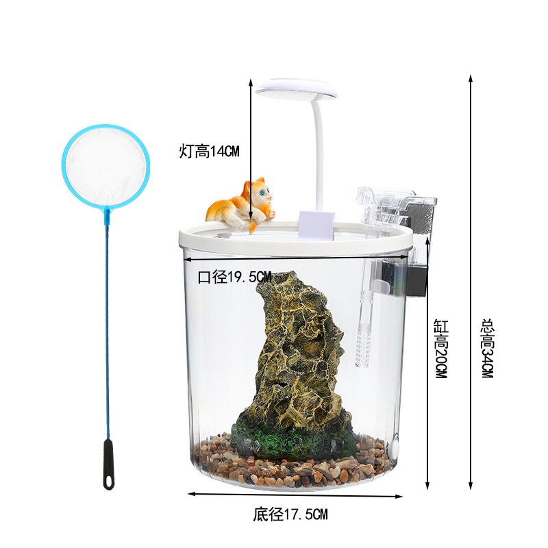 • 둥근 데스크탑 조경 탱크 디럭스 버전 흰색 무음 필터 펌프 + 전체 스펙트럼 열대 물고기 연색 램프 + 새끼 고양이 펜던트 + 돌 + 낚시 + 암석