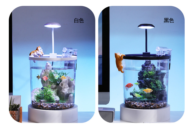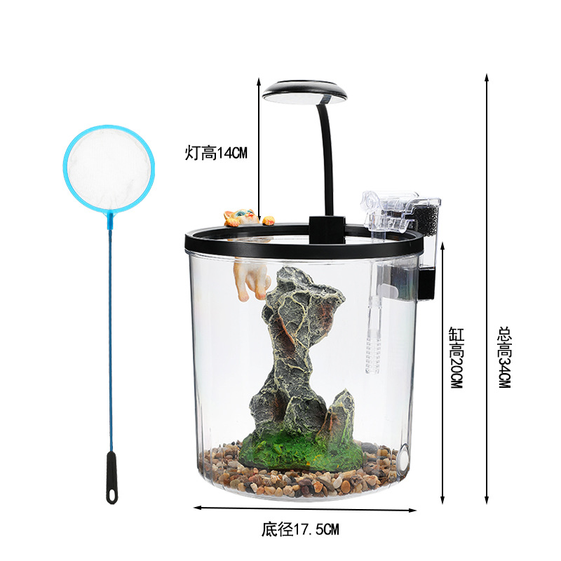 • 검정색 무소음 필터 펌프 + 풀 스펙트럼 열대어 연색 램프 + 돌 + 낚시의 둥근 데스크탑 조경 업그레이드 버전