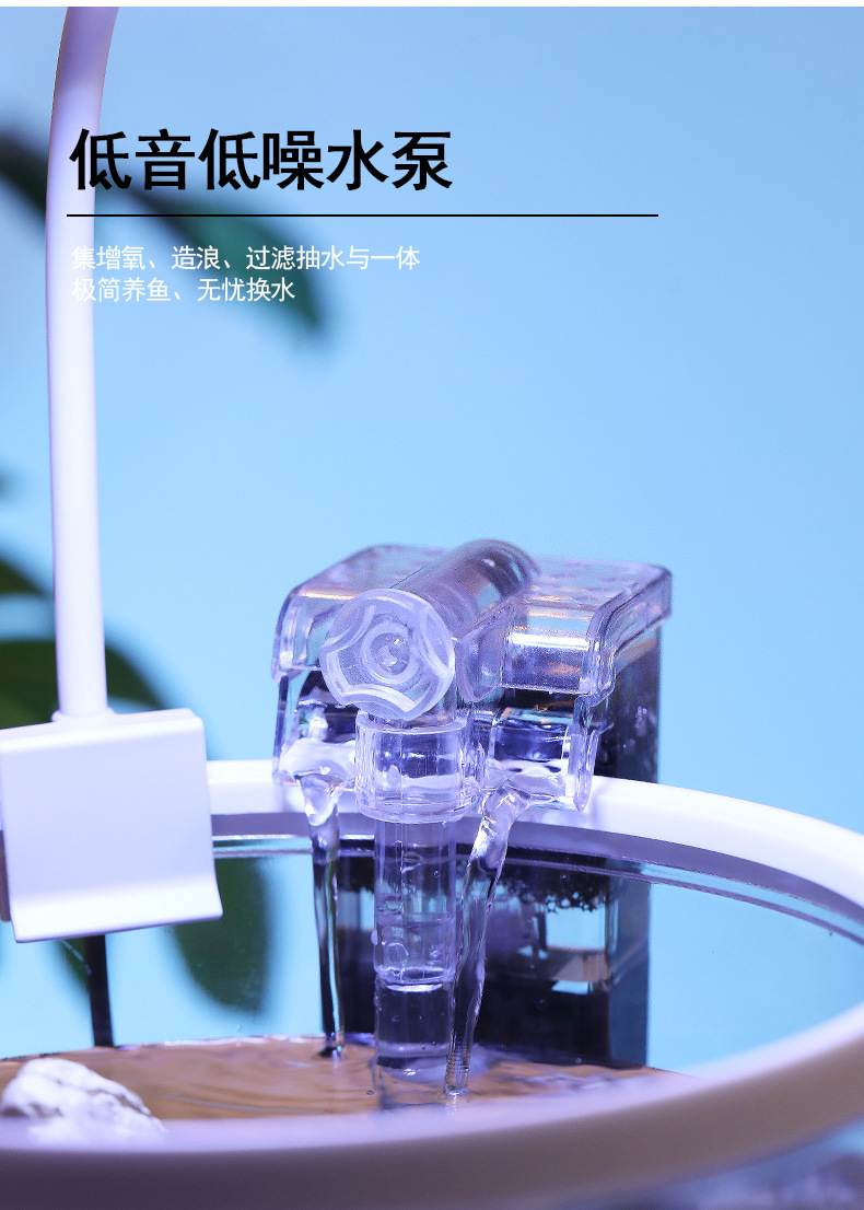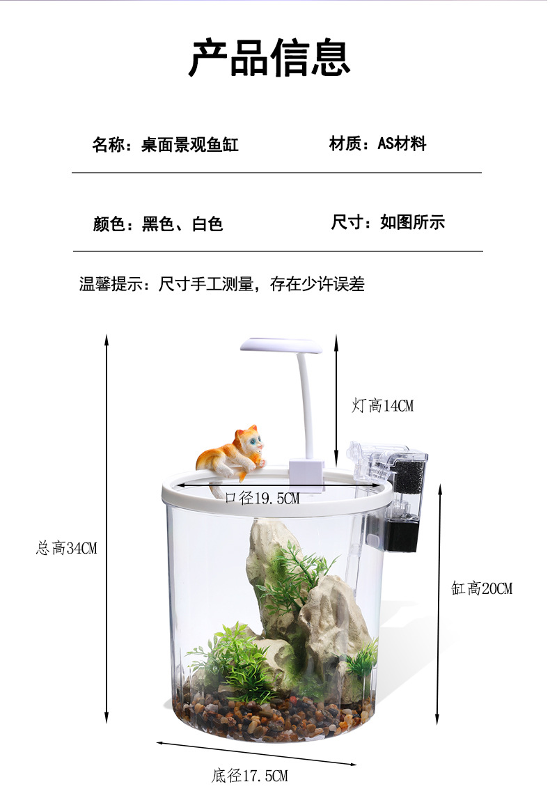 • 흰색 무소음 필터 펌프 + 전체 스펙트럼 열대어 연색 램프 + 돌 + 낚시의 둥근 데스크탑 조경 업그레이드 버전