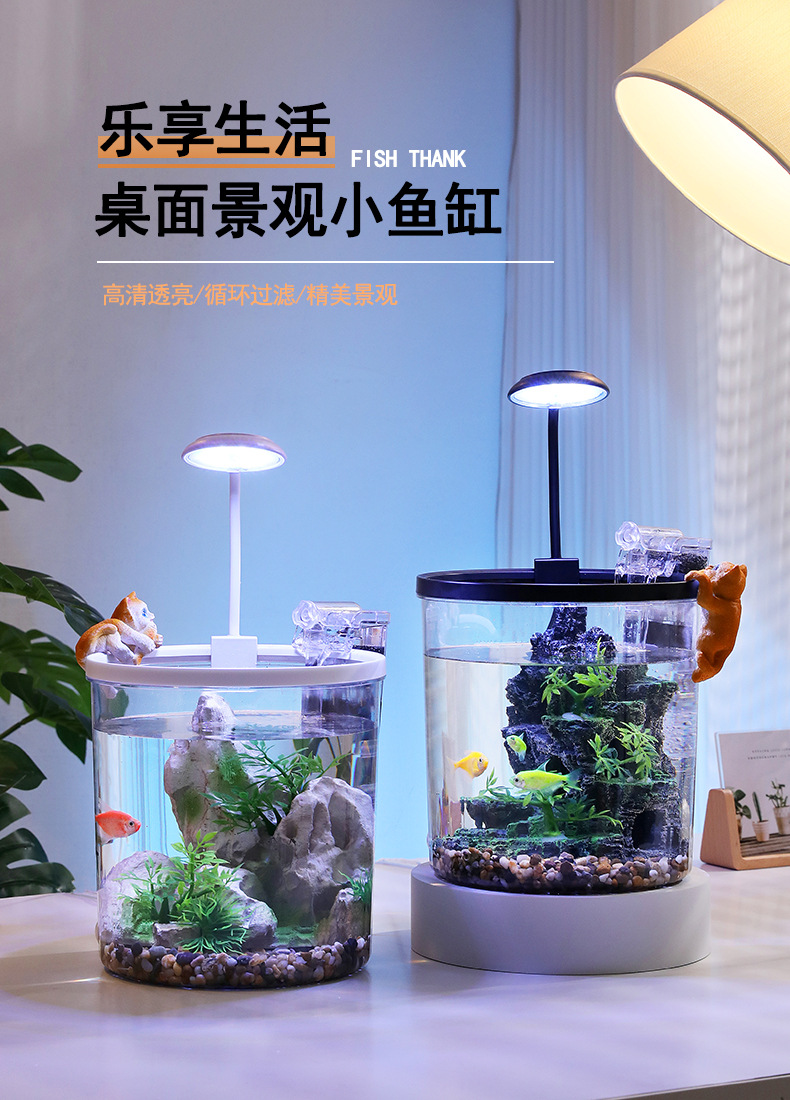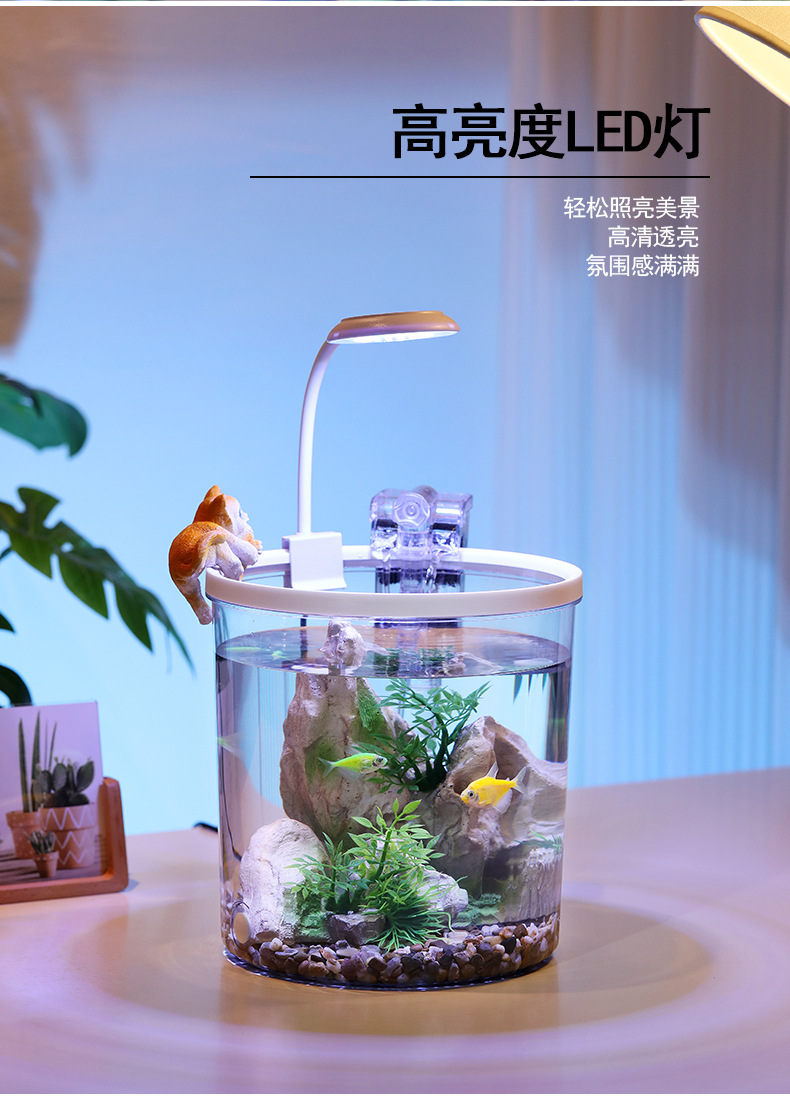 어항 순환 플라스틱 금붕어 어항 산소 공급 사무실 책상 거실 가정용 수족관 관상어 미니스토어 가기