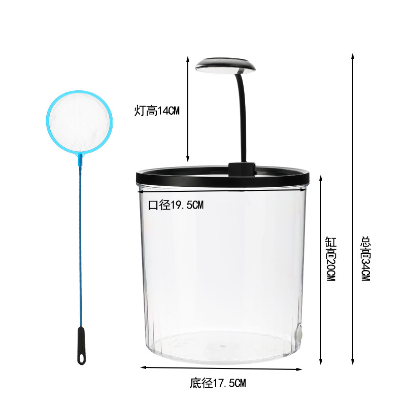 • 둥근 데스크탑 조경 탱크 기본 버전 검정색 전체 스펙트럼 열대어 연색 램프 + 낚시