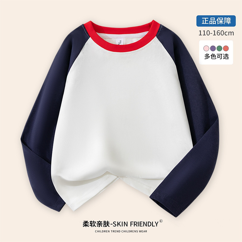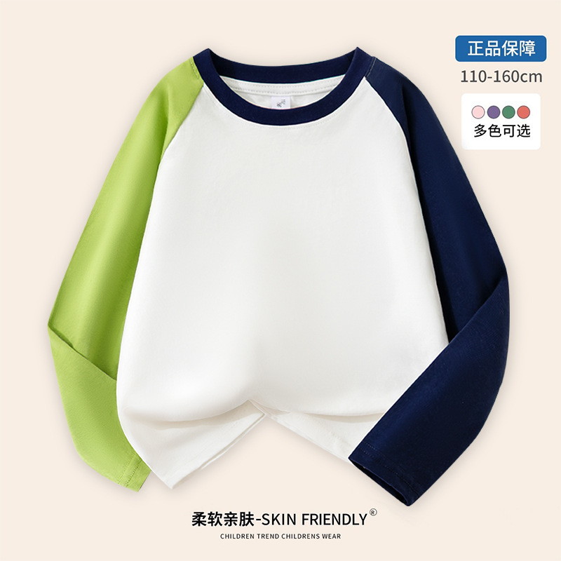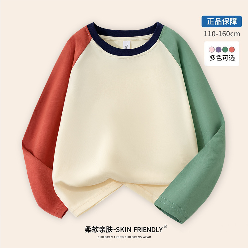 도매 어린이 라글란 긴 소매 티셔츠 면화 소년 패션 브랜드 느슨한 버전 기본 셔츠 안에있는 최고의 큰 소녀스토어 가기