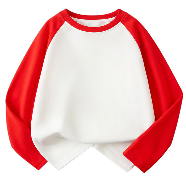 • 오렌지색과 녹색 소매가 돋보이는 배색 긴팔 티셔츠