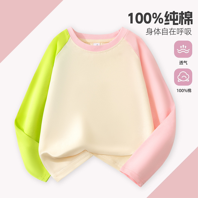 도매 어린이 라글란 긴 소매 티셔츠 면화 소년 패션 브랜드 느슨한 버전 기본 셔츠 안에있는 최고의 큰 소녀