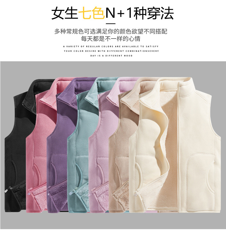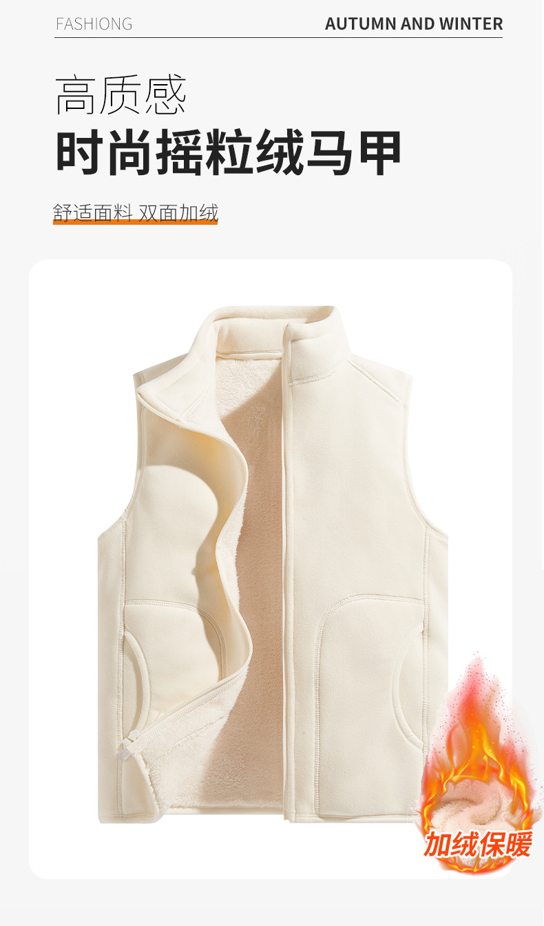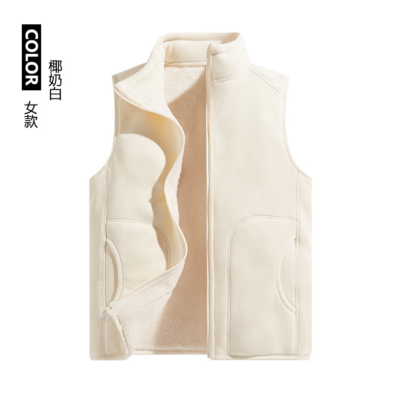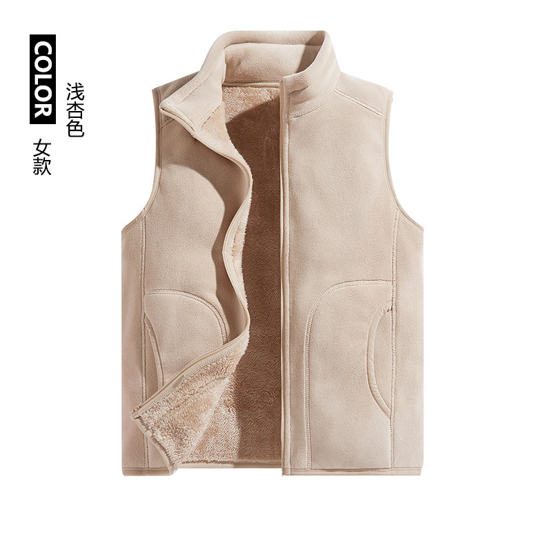 국경 간 가을과 겨울 양털 기모 조끼 남자와 여자의 한국식 두꺼운 조끼 남자 가을 착용 따뜻한 올림픽 벨벳 재킷 여자