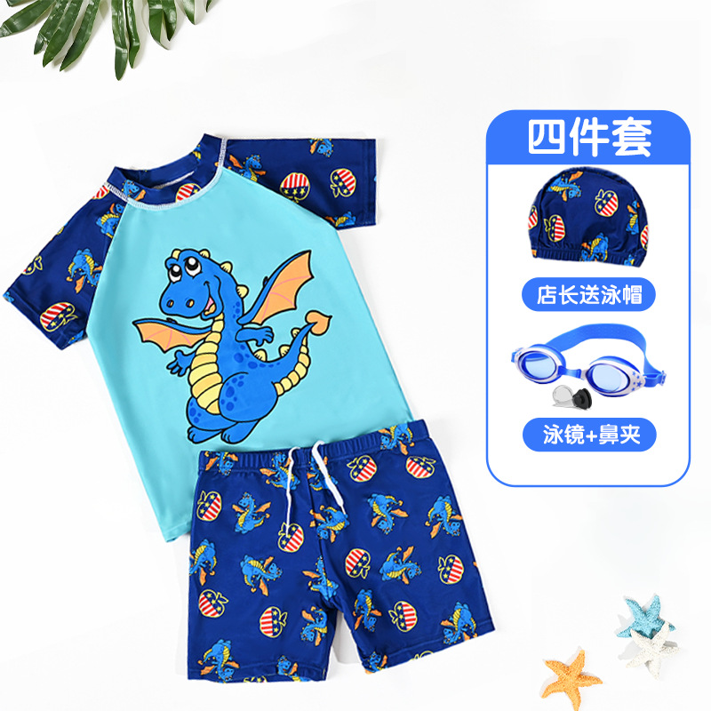 소년 수영복 수영 고글 수영 세트 어린 소년 태양 보호 빠른 건조 분할 수영복 해변 수영복 세트